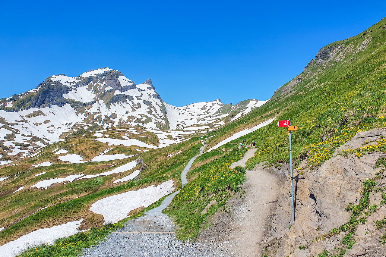 스위스 처음 방문인 우리는 특히나 더 그랬다. '아이거 북벽을 눈앞에 두고 걷는 하이킹', '꽃이 가득한 아름다운 녹지를 걷는 트래킹', '최고의 스릴을 즐길 수 있는 하이킹'. 모두가 특징적인 것만을 제시하니 쏟아지는 정보에 눈이 핑핑 도는 기분이었다. 정보를 정리하는 것도, 선택하는 것도 모든 것이 힘에 부치니, 결국 정해진 것 없이 현장으로 뛰어들었다. 어디선가 전해 들은 것 중 가장 기억에 남는 곳으로.