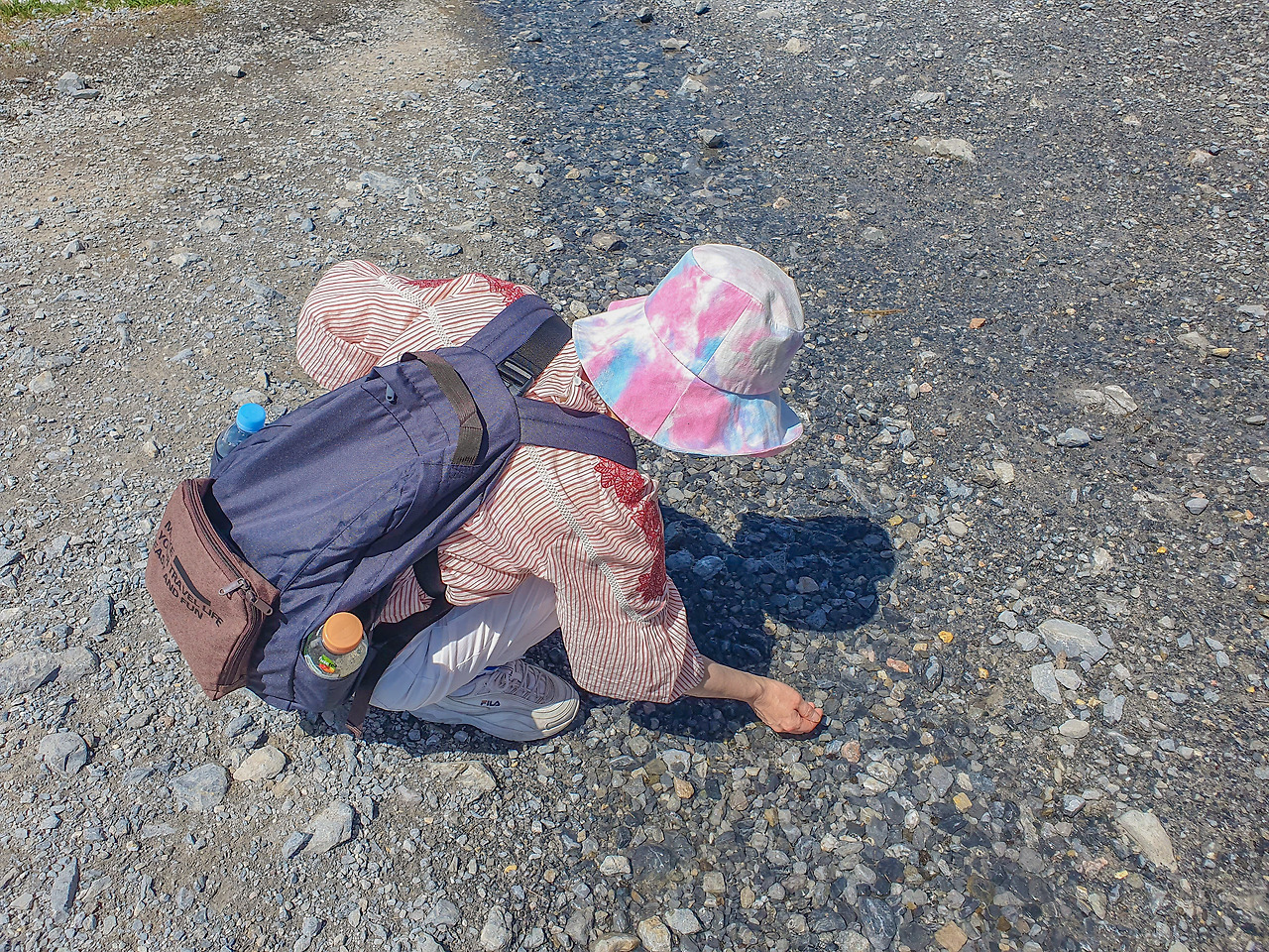 햇살이 강렬한 여름엔, 몇 개월에 거쳐 쌓인 눈과 빙하에서 녹은 물이 흘러내리고 있었다. 빙하가 녹은 물은, 눈이 녹은 것과는 다르다. 꽤나 오랜 시간 동안 낮은 온도를 유지했던 것인 만큼, 엄청 시원하고, 또 굉장히 맑고 투명한 느낌이 돈다. 해발고도 2000m 위인지라 공기가 시원해도 내리쬐는 햇빛이 뜨거웠는데, 더위에 지쳤을 때쯤 한 번씩 힘이 되었다. 이곳의 수돗물조차 먹지 않던 우리였던지라, 시도조차 생각을 안 해봤지만, 빈병에 물을 받아먹는 사람도 있더라.
