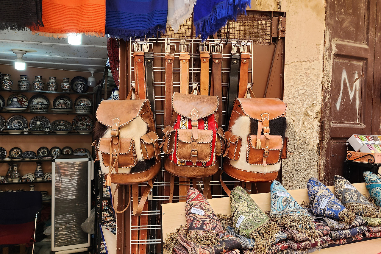 가는 길은 염색 공장으로 유명한 곳답게, 상당한 양의 가죽 제품을 구경할 수 있다. 가끔씩 다른 물건도 있지만, 가죽 제품이 워낙 많아 골목은 특유의 가죽 냄새로 가득하다. 이곳에 구석구석 잘 돌아다니다 보면 가죽 장인들도 볼 수 있다. 이 볼거리를 마냥 서서 구경할 여유는 없을지도 모르지만.