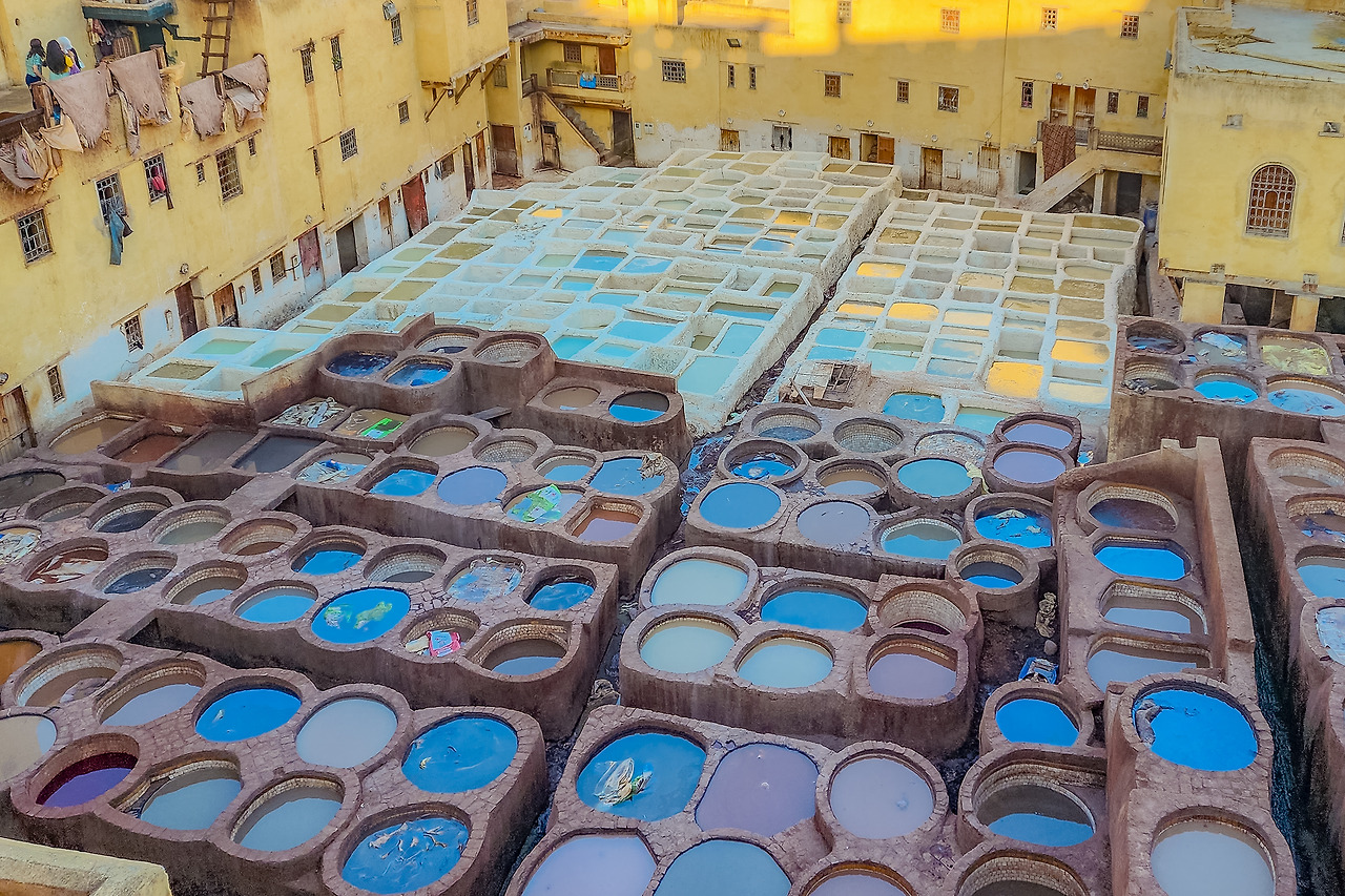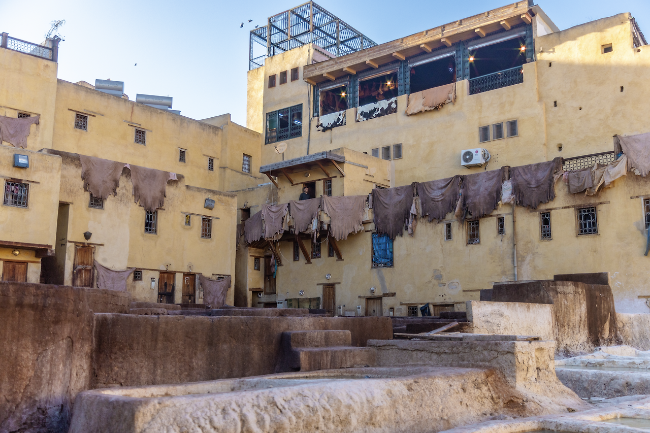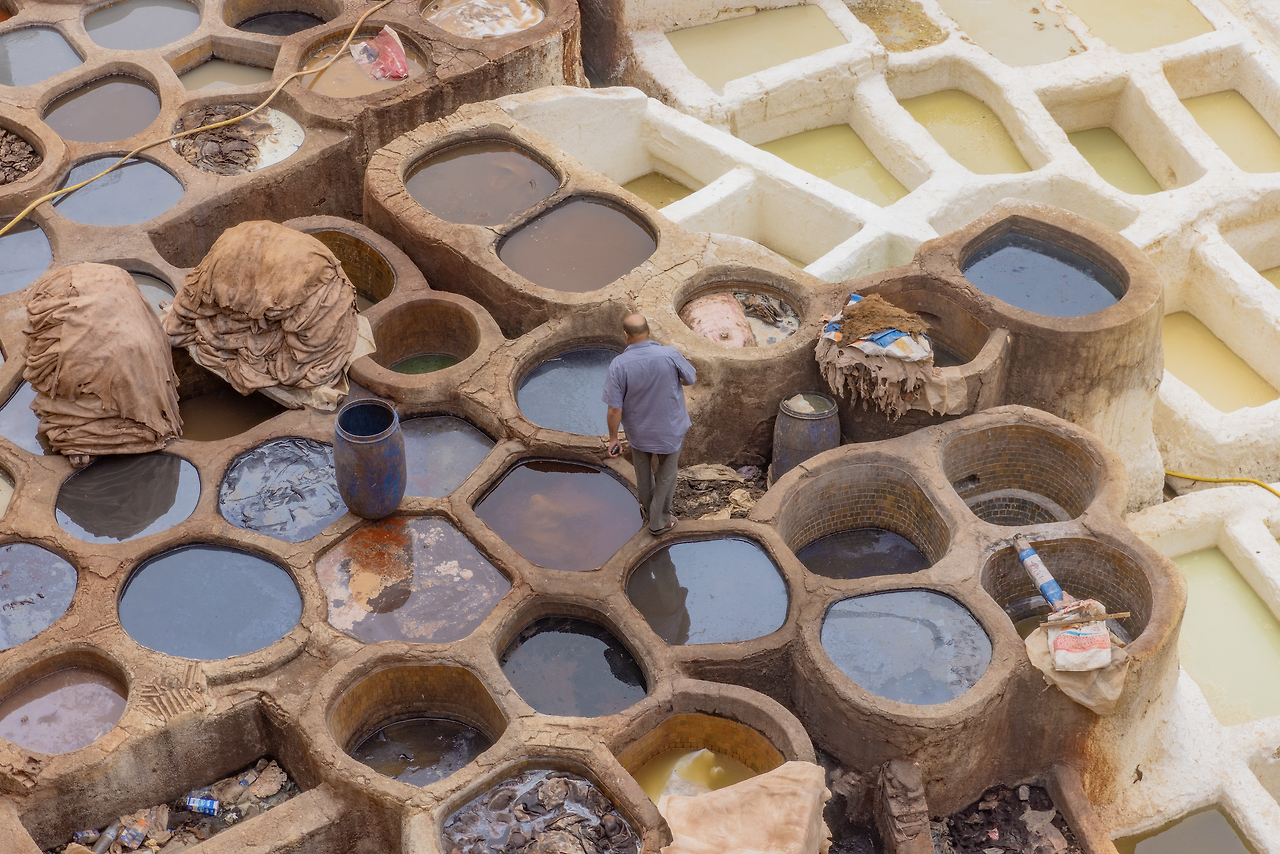 모로코엔 사막 외에도 널리 알려진 명소가 한 곳 더 있다. 염색 공장. 이들 말로 하면 ‘Tannery(테너리)’다. 그들만의 전통방식을 오랜 시간 이어온 역사적 장소인 데다가, 세계에서 품질 좋은 가죽을 생산하기 때문이다. 저렴하면서도 부드러운 가죽으로. 가죽과 독특한 풍경 때문에 해마다 상당한 수의 관광객이 방문하는 페즈이지만, 맹점이 하나 있다. 악취. 가죽을 부드럽게 하는데에 비둘기 배설물을 사용하는데, 이것이 누적되어 나는 냄새가 엄청나다. 세계에서 더러운 여행지 중 하나에 꼽히기도 할 만큼.