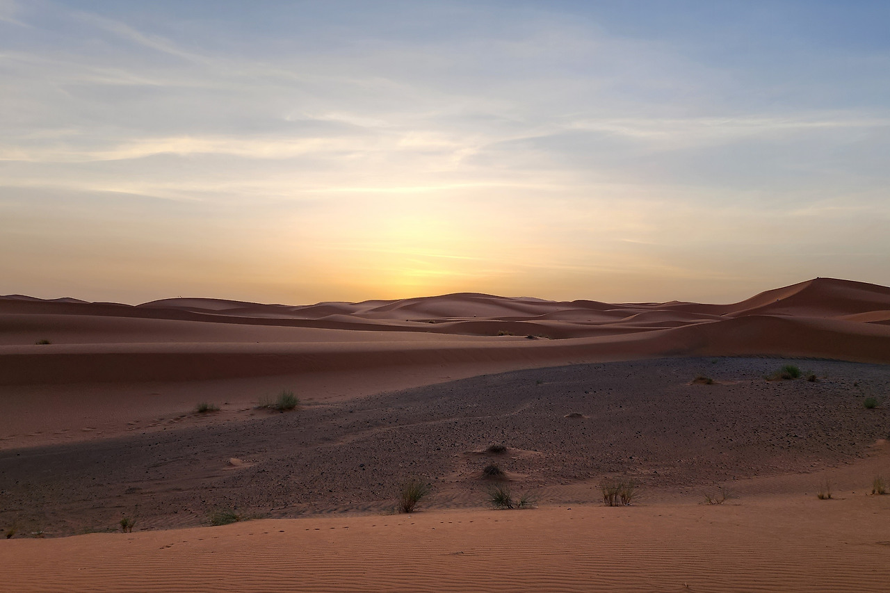 사막투어는 굉장히 이른 시간에 끝난다. 이곳에서 다른 지역으로 이동하려면 꽤 오랜 시간이 걸리기에 그 점을 고려한 듯했다. 이 때문에 동이 트기 시작할 때부터 떠나기까지는 시간이 굉장히 촉박했다. 하지만, 가시거리가 생긴 해가 뜬 이른 아침의 사막은 내 발로 이곳을 경험할 마지막 기회여서 포기할 수 없었다. 얼마 남지 않은 시간을 짜내어 베이스캠프에서 조금 걸어 나갔다.