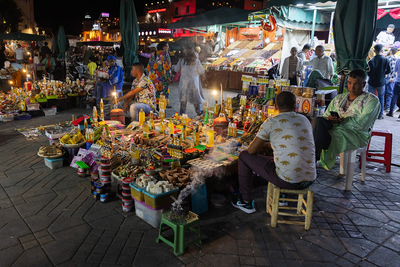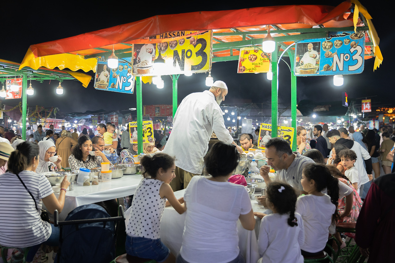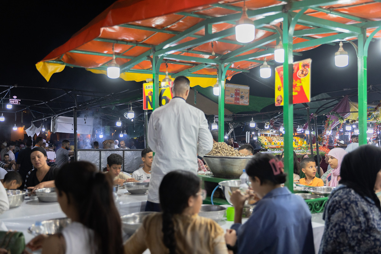 마라케시는 사막이 있는 메르주가를 방문하는 이들은 꼭 지나가는 거점지다. 그만큼 방문객이 많기에 야시장에 대한 정보를 인터넷에서 꽤나 찾아볼 수 있다. 현장에서 둘러보고 결정하는 것도 좋겠지만, 비교적 원활한 저녁식사 경험을 원한다면, 특정 가게를 마음속에 정해두고 가는 걸 추천하겠다.