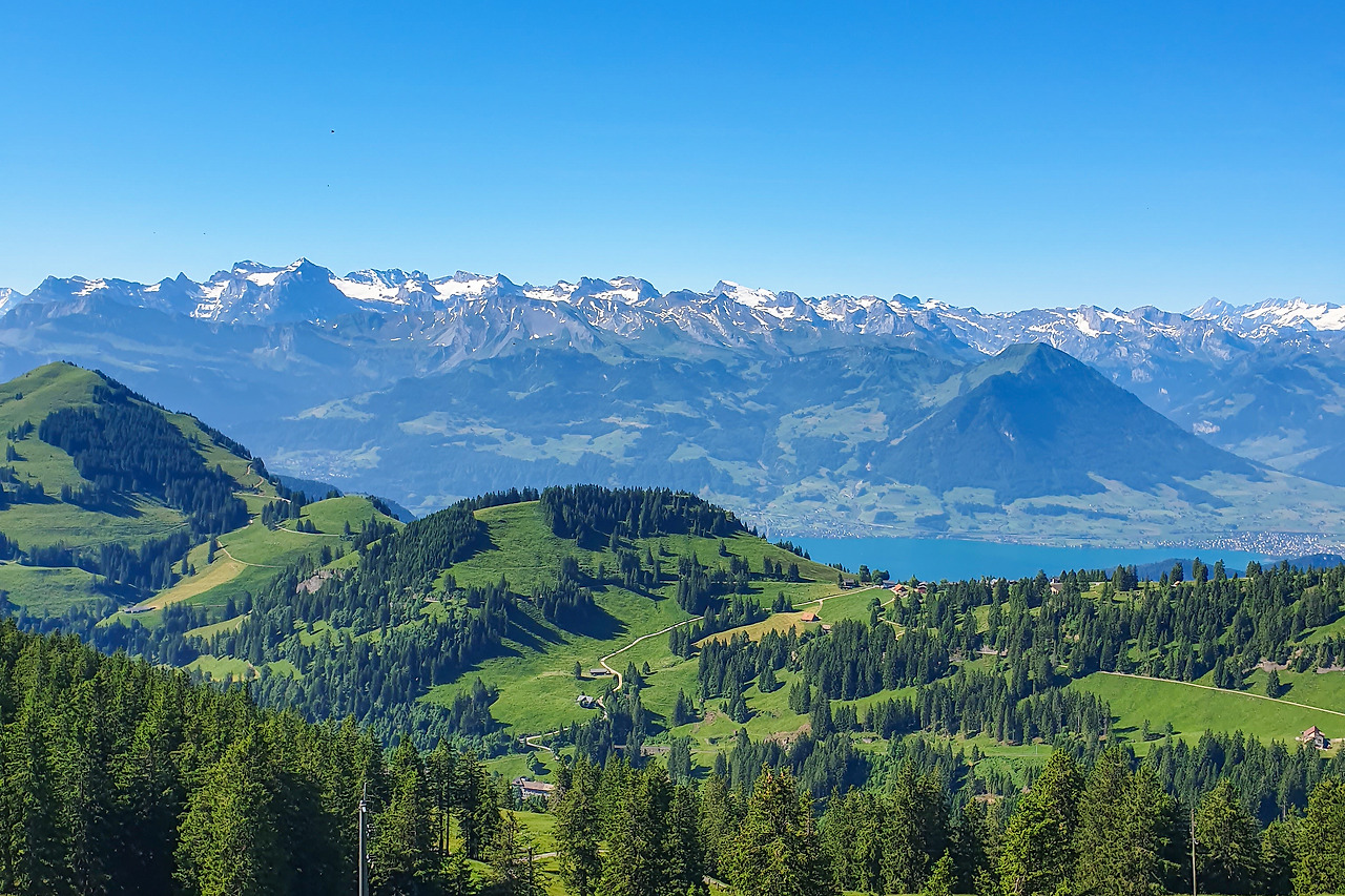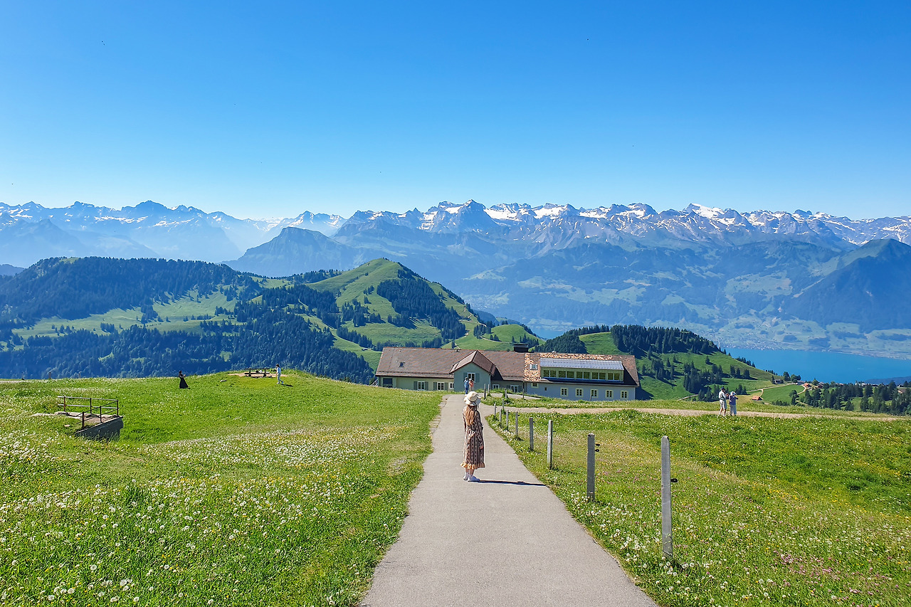 비츠나우에서 내려 산악열차를 타고 리기산에 도착했다. 한참 창가에 달라붙어 정신없이 밖을 바라보고 있으니 시간 가는 줄 모르고 금세 도착했다.