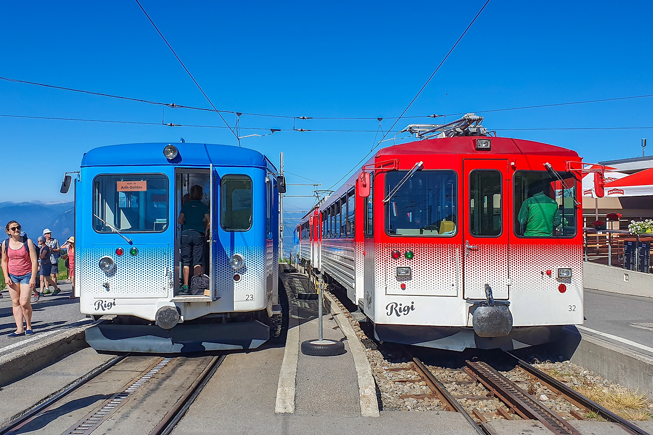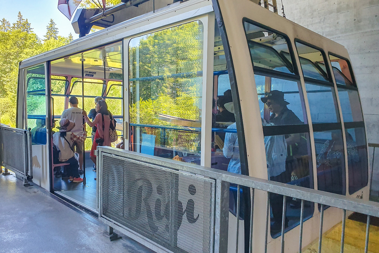 케이블카, 산악열차 모두 페리 도착 시간에 맞추어 시간이 편성되어 있기 때문에 장시간 대기는 걱정할 필요 없다. 어떤 색깔 열차가 올진 모른다. 리기산에 갈 때 산악열차를 탑승하는 경우, 아름다운 풍경 감상을 위해 꼭 좌측 좌석에 앉기를 바란다. 반대편도 물론 멋있지만, 조금 더 광활한 자연을 느낄 수 있다.