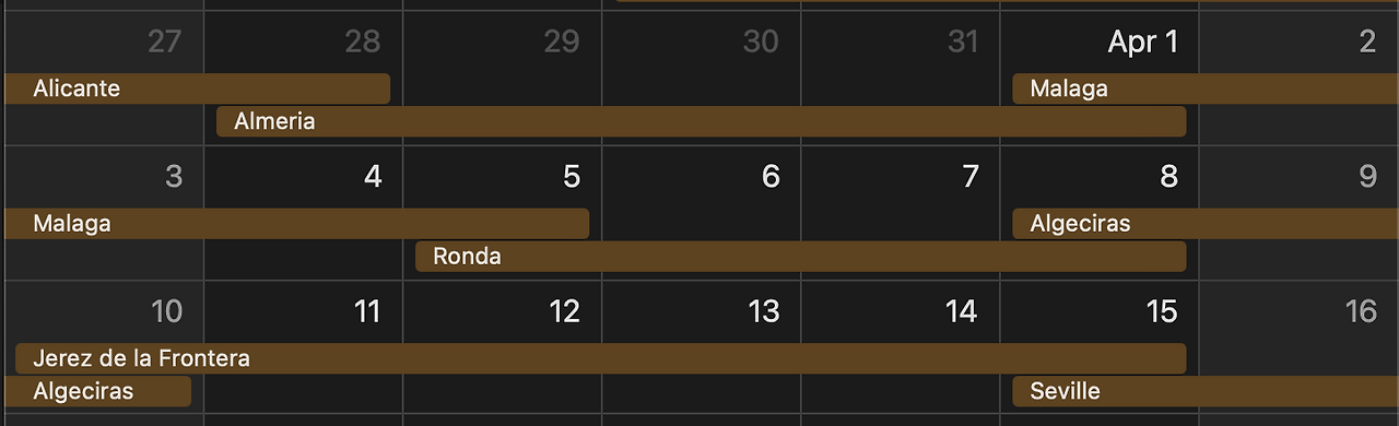 처음 계획은 최대 30일이었다. 스페인만. 영국까지 가기로 결정하고 일정을 조정하다보니 43일까지 늘어버렸다. 졸업을 눈앞에 두고 있던 때라 마지막 장기간 여행이 될 수도 있겠단 생각에 욕심을 버리지 않았다. 그래서 도시를 포기하는 것보다 시간과 돈을 더 투자하는 길을 선택했다. 굉장히 여유로웠다. 런던을 제외한 대부분의 도시는 중소도시들인데다 남들이 보내는 시간보다도 더 오래 머무르며 천천히 그곳을 음미하며 둘러보았다.