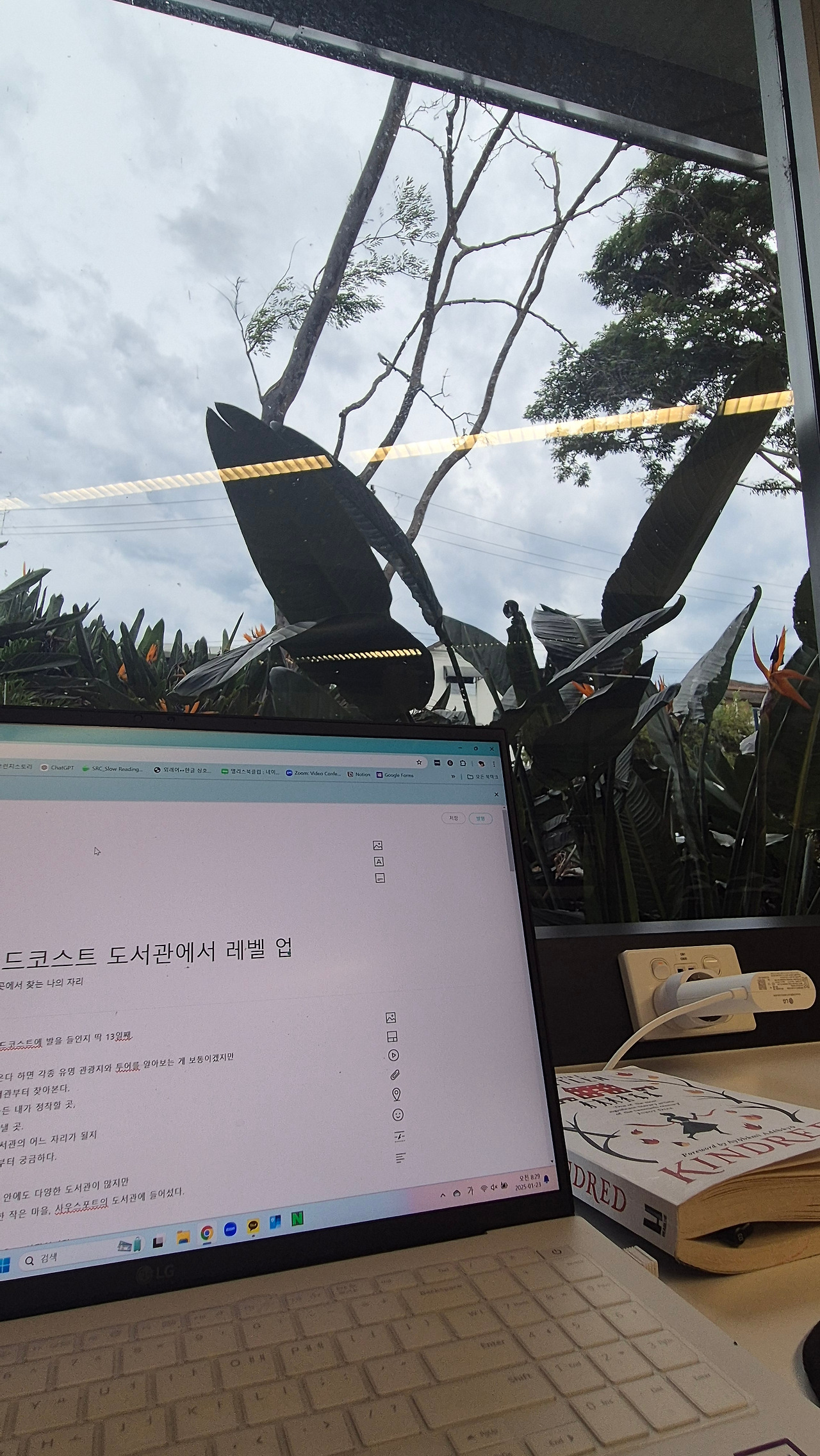 오늘 창가쪽에 있는 컴퓨터용 테이블에 자리잡아보았다.
