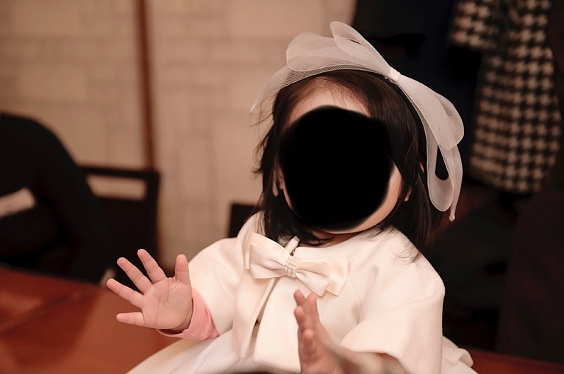 오후 4시쯤 스냅 촬영을 하고 간단하게 돌잡이 후에 저녁식사를 하는 일정이었다. 아이는 낮잠을 잘 자고 일어나 컨디션이 아주 좋았다. 11월 말이라 날이 쌀쌀하고 해도 일찍 져서 서둘러 야외 촬영부터 했다. 야외에서는 흰색 돌 드레스에 볼레로를 입고 촬영했다. 식구들이 하나둘씩 도착했고 양가 부모님께서 도착하셨을 때 같이 야외에서 가족사진을 찍었다. 아이는 방긋방긋 잘 웃어주었다.