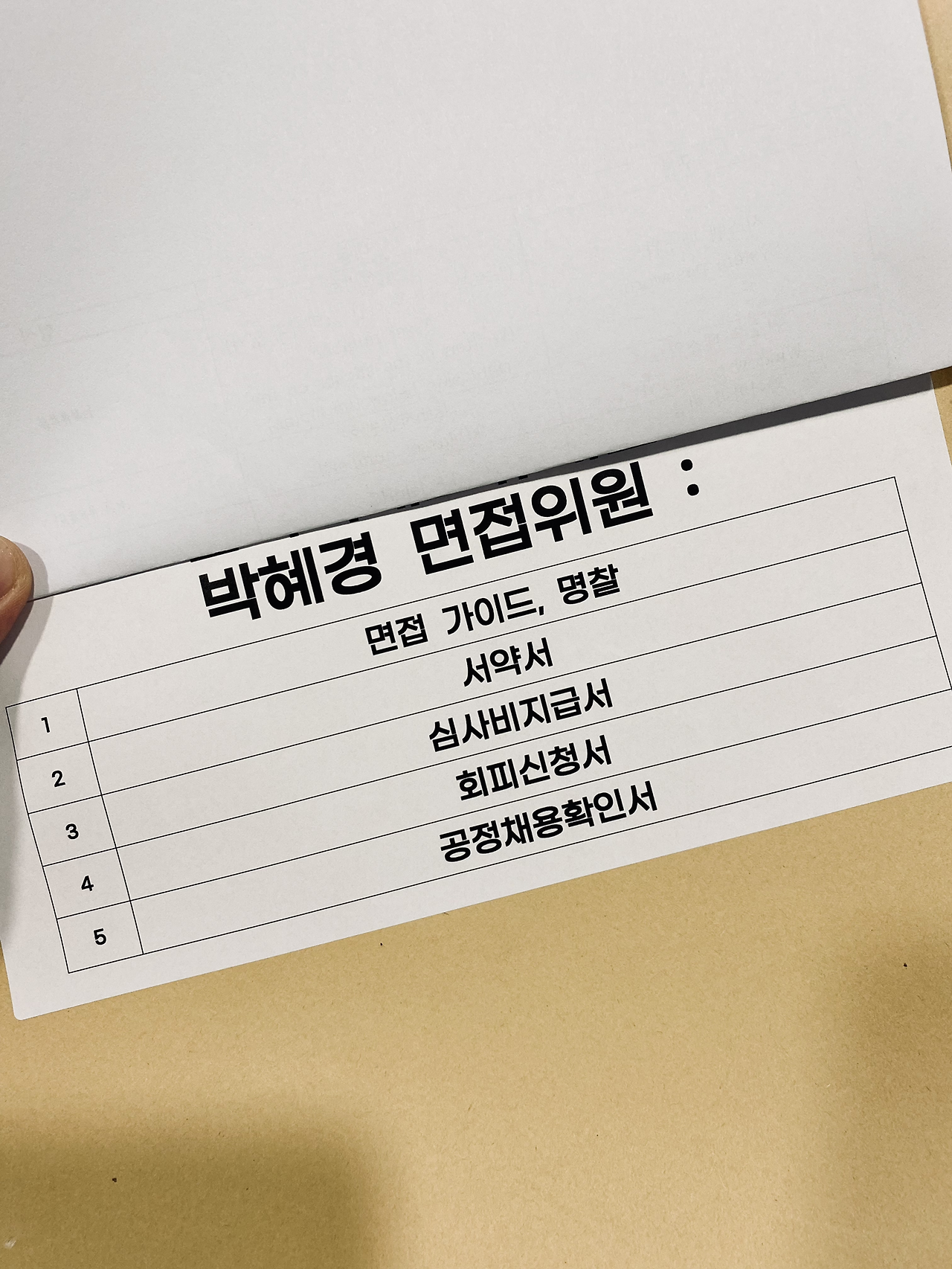 순간적으로 헉했는데 가만히 생각해보니 맞는 말이었다. 상식적으로 면접으로 보러 들어오는 지원자는 여기 앉아있는 두 사람이 면접위원이라는 걸 알고 있을 것이고 우리는 각 지원자에게 원어민은 내부 에디터이고 나는 외부 전문가로 면접에 참여한다고 소개하기로 했다. 때문에 ‘면접위원’이라고 적힌 명패와 명찰은 불필요한 위화감을 조성할 뿐, 대단히 중요한 요소가 아니라는 판단이 섰다.
