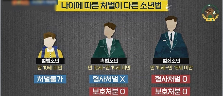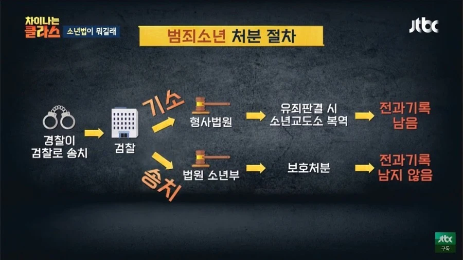 화두가 되는 촉법소년같은 경우, 보호처분만 가능한데 이 처분에는 1호~10호까지 있다. 이 중 8호~10호만 소년원에 가는데 이곳은 ‘기숙 학교’와 비슷하다. 밖으로만 나갈 수 없고 일반 학생들처럼 수업듣고 졸업까지 가능하다. 최대 형량인 10호는 이 소년원에 2년간 있어야 한다. 그리고 무엇보다 중요한 건 보호처분은 전과기록이 남지 않는다는 것이다.