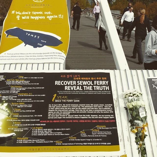 멜버른의 야라강 다리가 노란 리본으로 뒤덮인 2015년 4월 16일 - 나는 자원봉사하시는 분들을 위해 도시락을 준비해서 야라강으로 갔고 노란 리본을 매다가 엉엉 울어버렸지. 어찌나 서럽게 울었던지 교민잡지에서 취재차 나오신 분께서 ‘특별한 사연이 있으신지..?’ 하며 마이크를 들이미시더라.