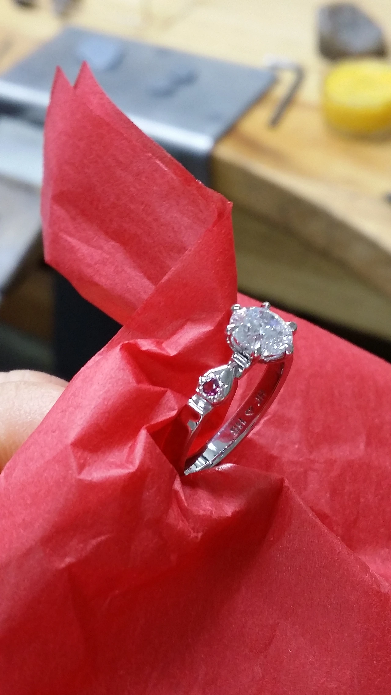 K : 음... 내 스페셜티가 결혼반지라 그런지 청혼을 준비하는 남자분들이 고객일 때가 많아. 그러면 나는 여자 친구에 대해서 최대한 많이 질문하거든. 어떤 사람이고 취향이 어떤지 어떤 느낌으로 디자인하기를 원하는지를 함께 상의하는 거야. 대부분의 남자들은 당최 모르고 반지에 대해 크게 관심이 없어. 그냥 무난하게 대충 잘해달라고 하는 게 대부분인데 간혹, 아주 드물게 여자 친구를 자세히 묘사하는 사람이 있어. 내 여자 친구 손가락 사이즈는 K 3/4 예요 살결은 좀 밝고 무슨 색깔을 좋아하고 옷은 어떤 느낌으로 입고... 어쩌고 저쩌고. 여자 친구를 묘사하는 것만으로도 달떠 보이는 그 표정에 정말 나도 모르게 빠져들어. 사랑에 빠진 남자의 눈을 볼 수 있는 시간인 거지.