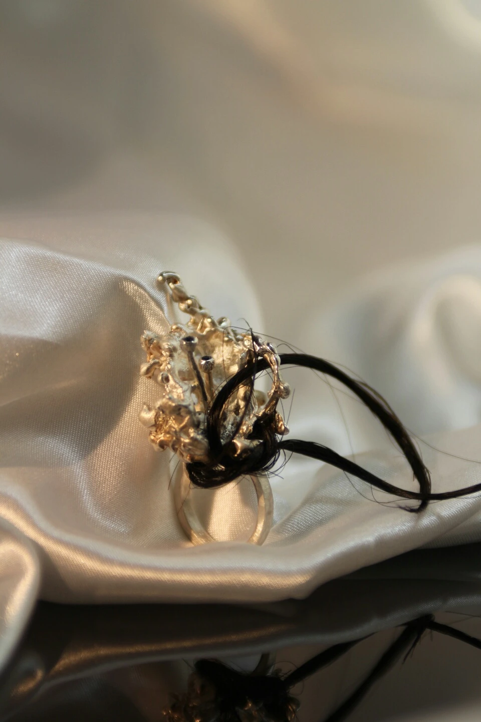 6년 전에 졸업 전시회를 할 때 나는 '검은 머리 파뿌리 될 때까지'라는 아름다운 한국말을 모티브로 해서 작품을 만들었어. 내 검은 긴 머리를 자르고, 지구 반대편에 있는 부모님의 하얀 머리와 함께 엮어서 반지와 목걸이를 만들어서 전시를 했지. 생소한 재료 때문인지 많은 분들이 관심을 가지고 의미를 물어보더라. 한국에 있는 그 표현을 들으면 다들 감탄하는 거야. 의미가 너무 아름답다고 하며. 그때 나는 내가 영어로 한국말로 하는 어떤 말보다도 '주얼리'가 내가 전하고 싶은 메시지를 잘 전달할 수 있다는 것을 알았어.