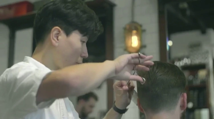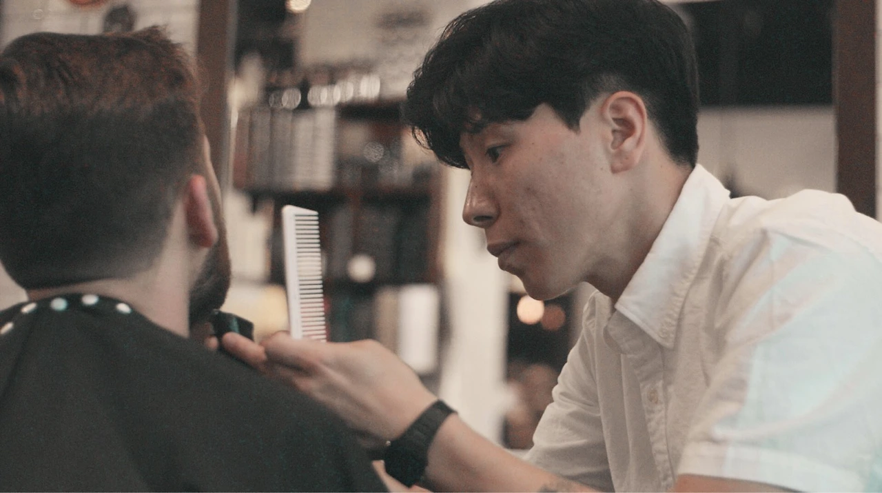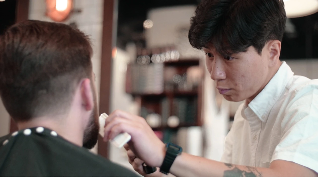 나는 그런 바버샵 중 한 곳에서 컷과 스타일링을 하는 미용사로 일을 하고 있는 거야.