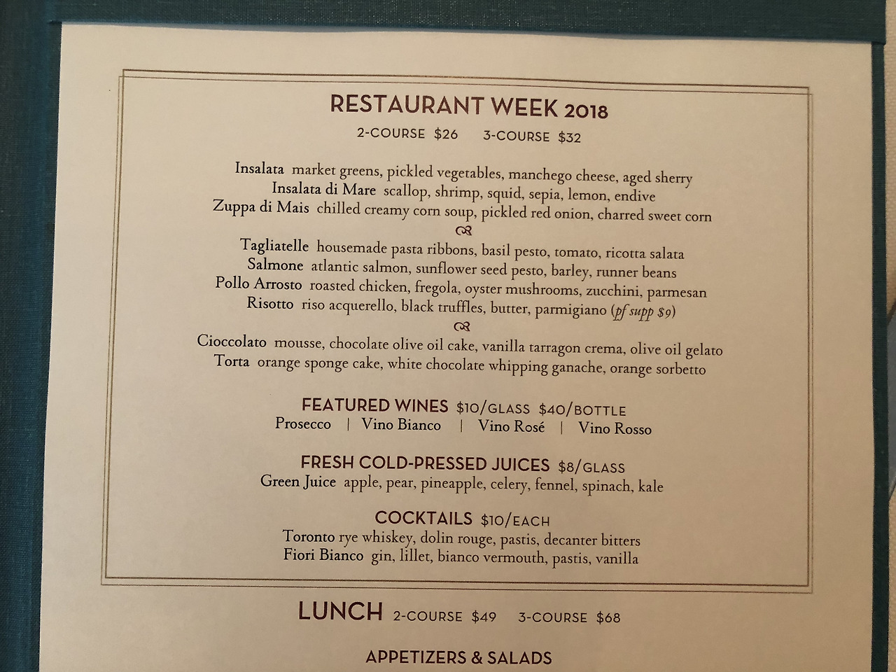 뉴욕의 레스토랑에는 주로 점심에 프리픽스 메뉴가 있고, 아주 혜자스러운 레스토랑 위크도 있다.