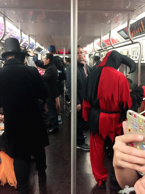 10월 31일에 하는 할로윈 퍼레이드는 UN파티 다음날이었다. 오후 늦게 뱀파이어 코스튬을 입고 나와, 퍼레이드가 시작되는 곳으로 향했다. 숙소에서 나와 1번 레드라인 지하철을 탔는데. 맙소사 정말 할로윈 데이 당일이구나 생각할 수 밖에 없는 풍경이었다.