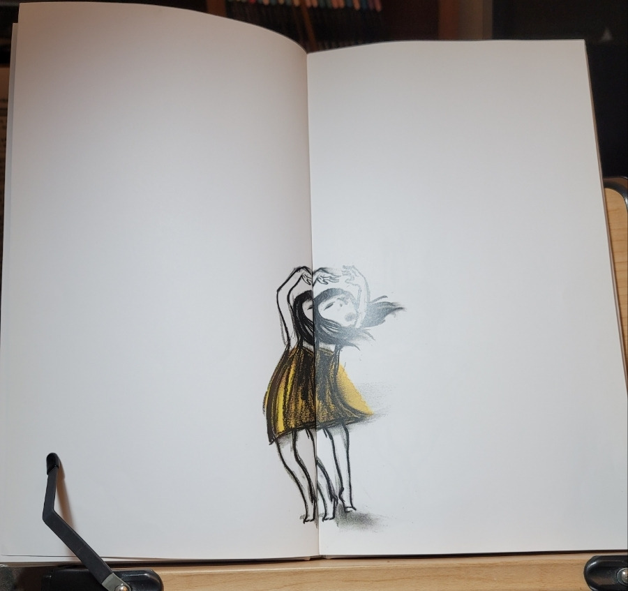 눈을 한쪽만 뜨고 그 아이를 살펴본다. 그 아이도 똑같은 동작으로 자신을 쳐다보고 있다. 그림 속 소녀의 표정이 생생하다. 이후 소녀는 신기한 듯 여러 동작과 우스꽝스러운 표정을 지어본다. 그럴 때마다 맞은편 아이도 그대로 따라 한다. 마치 거울 속에 비친 아이처럼. 좌우만 바뀌었을 뿐 똑같다. 두 소녀는 서로 가까워지고 춤을 추고 마침내 하나가 된다.