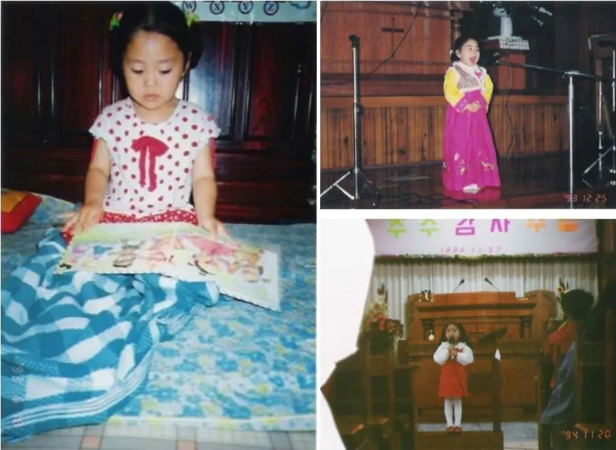 아이는 노래를 좋아하는 엄마와 책을 좋아하는 아빠 사이에서 태어났다. 아이의 오래된 취미는 독서였다. 글과 그림을 구분하던 시기부터 매일 손에서 책을 놓지 않을만큼 아이는 독서에 진심이었다. 또 아이는 노래부르는 것도 좋아했다. 부활절이나 성탄절만 되면 작은 꼬마가 어른들 앞에서 특송을 했는데 전혀 떨지 않았다고 한다. 아이는 한편으론 굉장히 예민한 아이였다. 가나다 순으로 꽂혀있던 위인전을 차례차례 읽고 나면 꼭 그자리에 꽂아 놓고 나와야만 직성이 풀렸고, 소꿉친구들과 찬양을 부르다가도 박자가 틀린 친구가 있으면 정확하게 누가인지 알아챘다. 책을 읽고 노래를 부르며 자신만의 확고한 감수성이 있었던 아이는 풍부한 감정에도 잘 울지 않는 아이였다.
