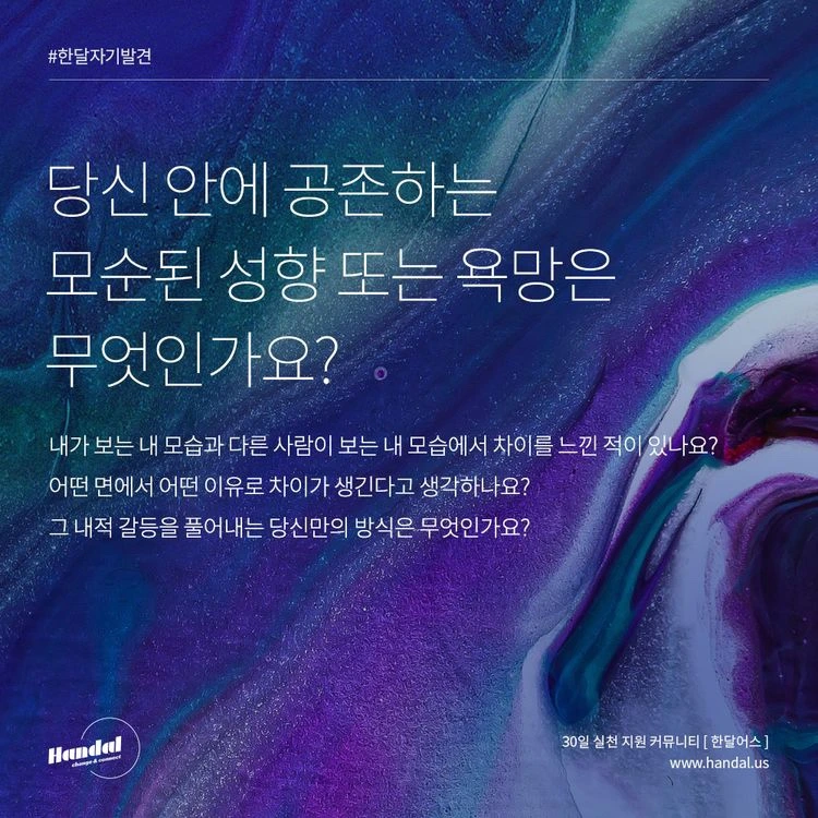 하지만 그런 나에게도 칭찬을 해주고 싶은 것은 그런 갈등의 시간, 자책하는 시간을 잘 지나왔다는 것이다. 만약 내가 비판적인 사람이 싫다고만 생각하고 아무런 티도 내지 않았다면, 주변 사람들은 나에 대해 아무런 피드백도 해주지 않았을 것이다. 드러내지 못한 내 마음은 답답함에 시들시들해졌을 것이고, 나중엔 내 마음이 왜 아픈지, 왜 불편한지조차 인식하지 못한 채 살았을 것이다. 하지만 서툴렀던 나는 이를 드러냈고 과정에서 여러 어려움은 있었지만 잘 성장해 지금의 내가 되었다. 여전히 내가 인식하지 못하는 내가 있음에도 불구하고 말이다.