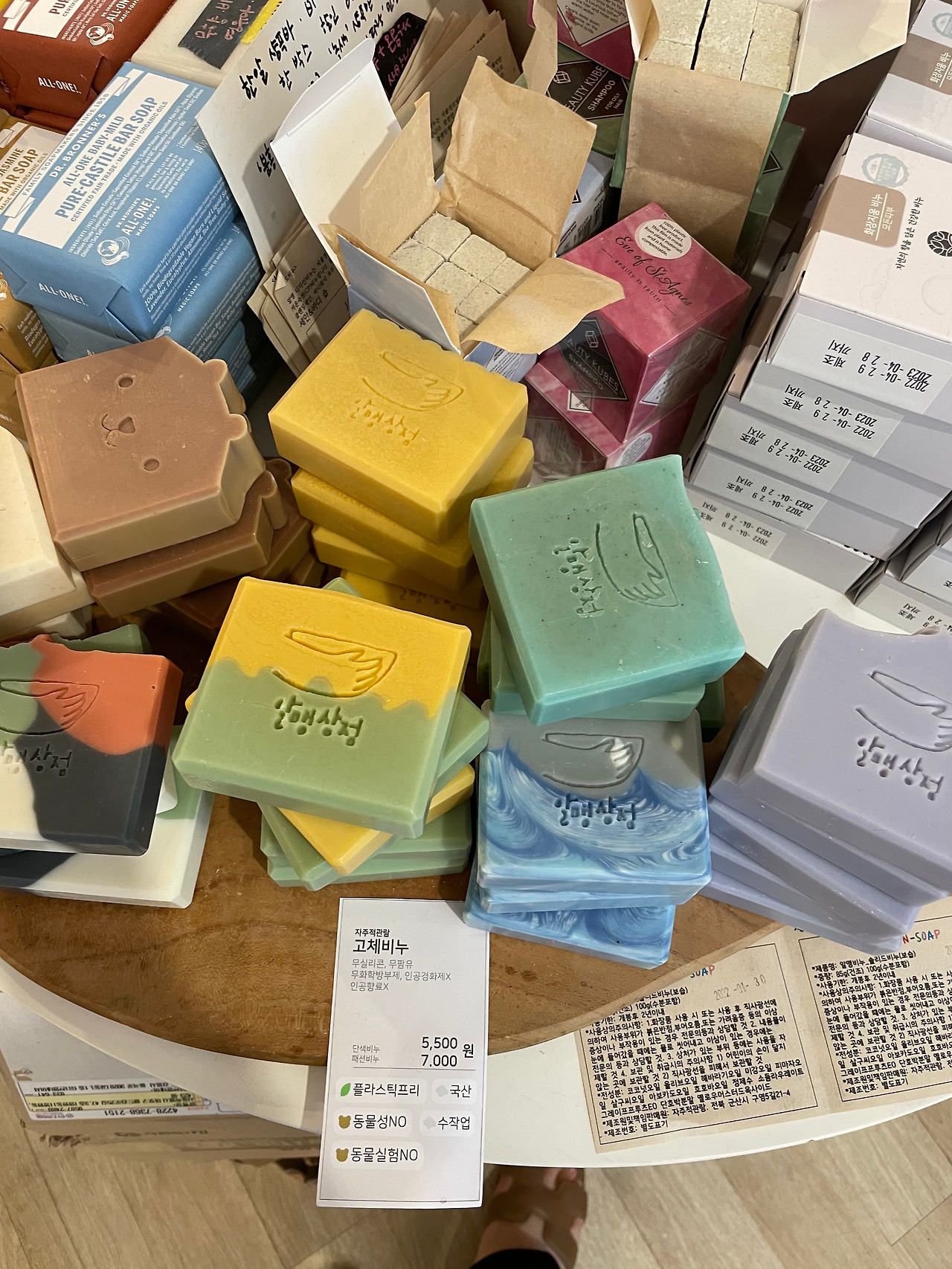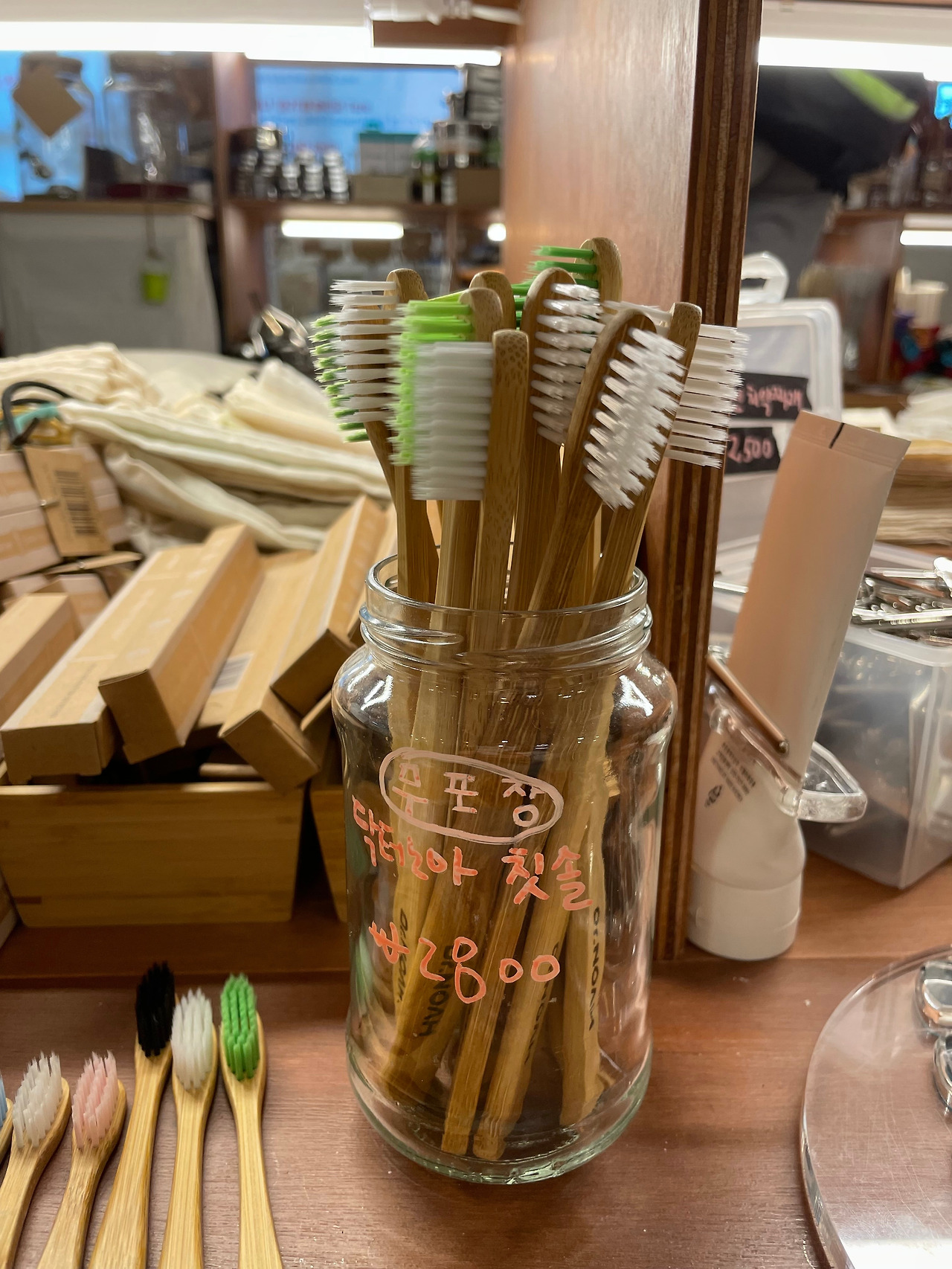 알맹상점을 알게 된 후 플라스틱을 재활용 수거함에 그냥 넣을 수 없을 것 같습니다. 또한 어떤 회사가 친환경을 실천하는지도 자세하게 보게 되었죠. 이번 방문에서 바디워시뿐만 아니라 친환경비누와 대나무칫솔까지 구매했습니다. 친환경비누는 장애인들의 재활능력 및 경제 활동 능력을 향샹시키는 '소화아람'이라는 사회적 기업에서 만든 제품이고, 대나무칫솔은 건강과 환경을 지키는 '닥터노아'라는 곳에서 만든 제품입니다. 알맹상점이 아니었다면 알지 못했을 곳입니다.