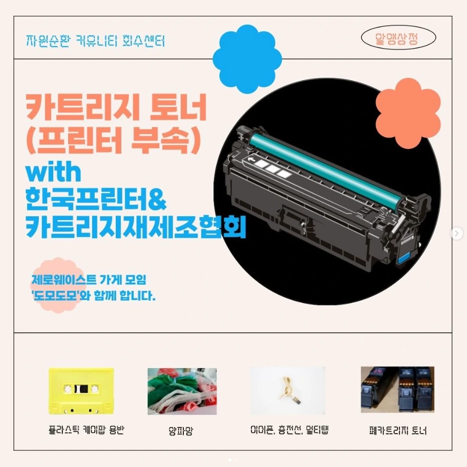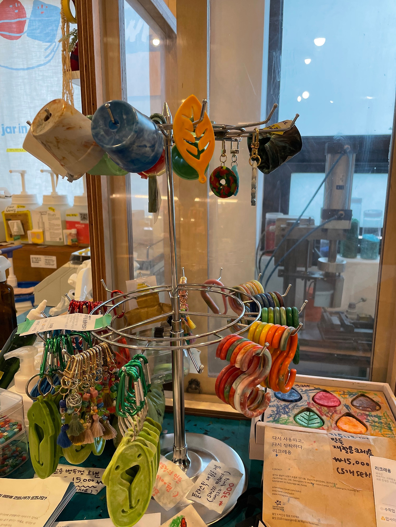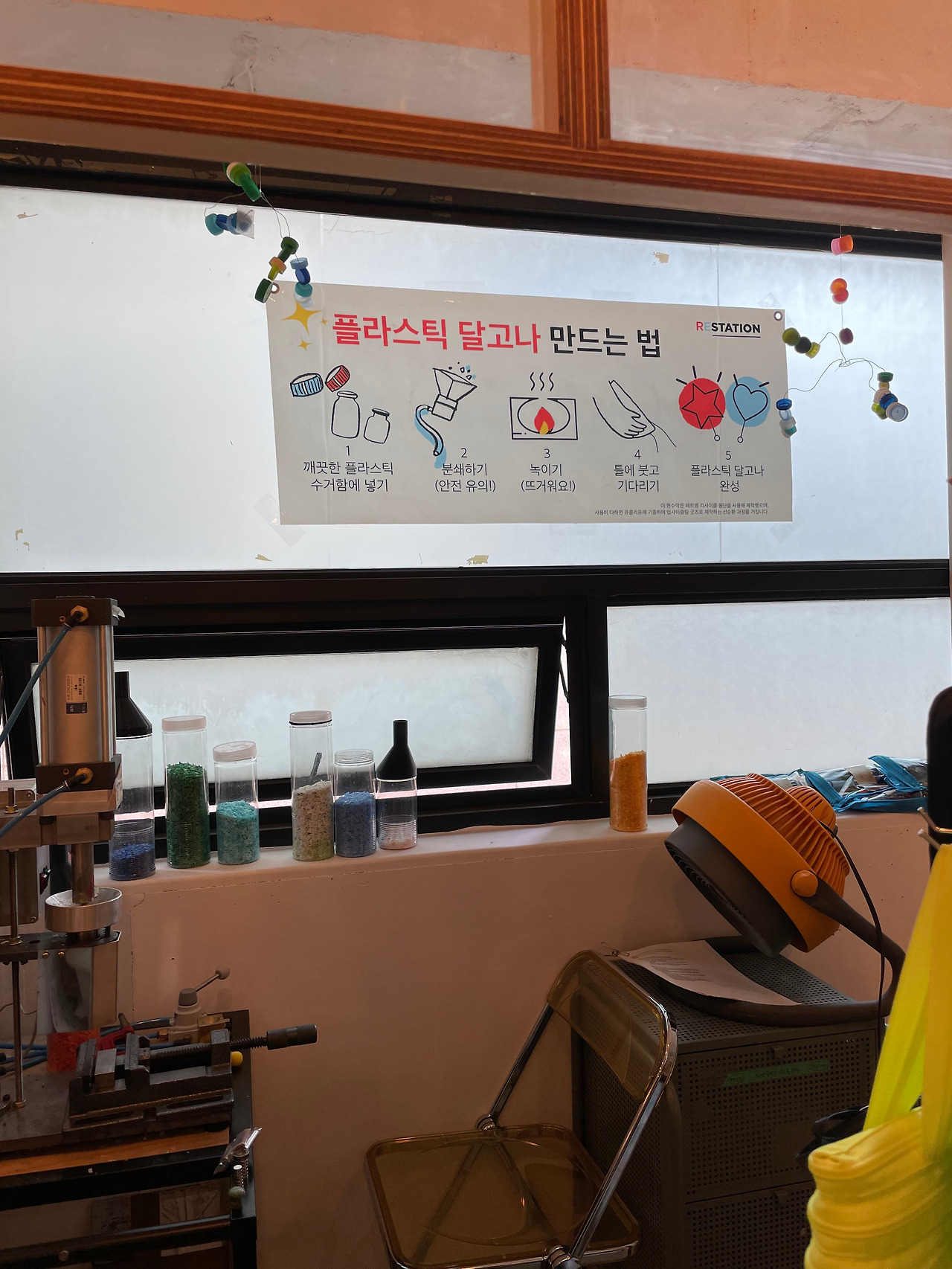 알맹상점은 제로웨이스트 물품만 판매하는 곳이 아닙니다. 손바닥보다 작은 플라스틱, 실리콘, 폐필터, 크레용 등 어찌 보면 그냥 버려질 수밖에 없는 쓰레기를 받는 자원회수센터의 역할도 합니다. 알맹상점의 찐팬인 알맹러들은 너도나도 양손 가득 쓰레기를 가지고 옵니다. 알맹상점은 알맹러들이 가지고 온 쓰레기를 소재별, 색깔별로 분류한 뒤 쓰레기 쿠폰에 도장을 찍어 줍니다. 12개의 도장을 모두 모으면 상점에서 업사이클한 굿즈 등을 주는데 그 반응이 꽤 좋습니다.
