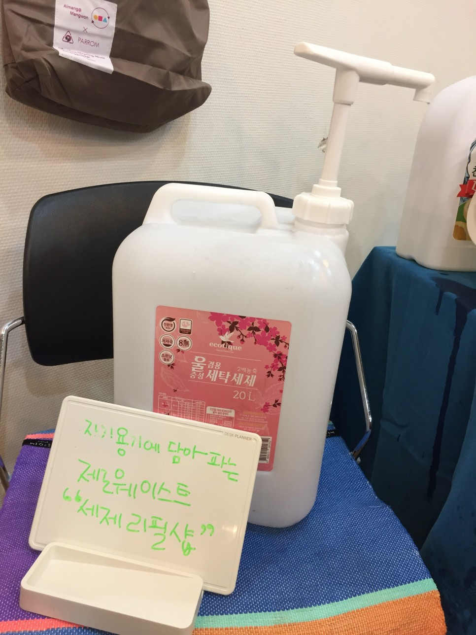 시간이 갈수록 플라스틱의 문제를 아는 사람들은 늘었지만 플라스틱을 실제로 줄이는 사람은 늘지 않았습니다. 때문에 세 명의 대표들의 고민은 줄지 않았죠. 그러다 해외에서 실천하고 있는 제로웨이스트 운동을 알게 되었습니다. 인도와 케냐에선 비닐봉지 사용을 금하고 있었고, 태국 방콕에선 5층 건물을 통째로 제로웨이스트로 채운 곳도 있었습니다. 그곳에서 영감을 얻은 이들은 한국으로 돌아와 다섯 종류의 세제를 리필하는 팝업 숍을 열었고 알음알음 소문이 나기 시작했습니다.
