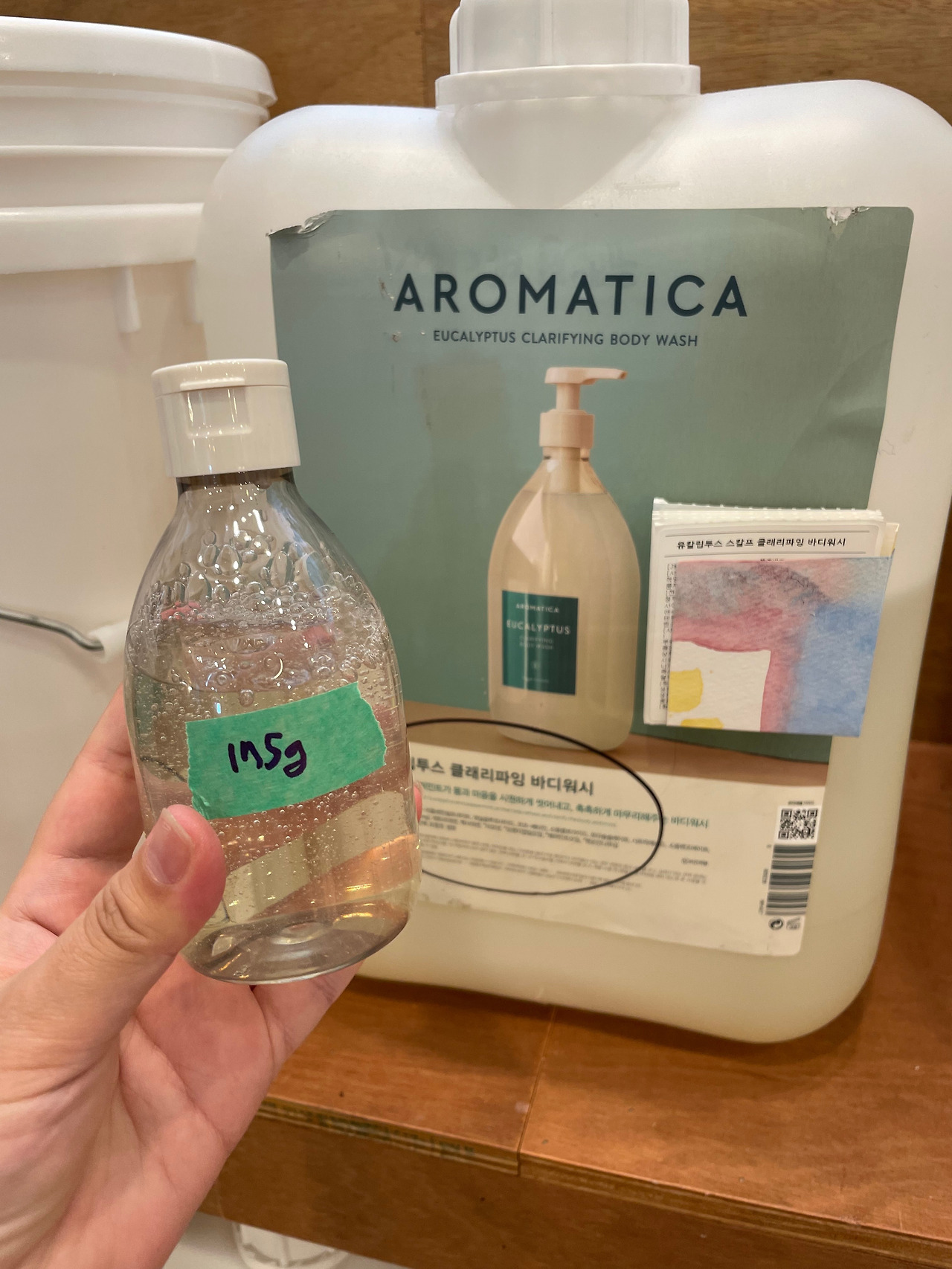 어때요, 어렵지 않죠? 저는 아로마티카 바디로션을 소분해왔고 가격은 약 3천 원이 들었습니다. 다 쓴 용기는 깨끗이 씻어 알맹상점으로 다시 가져오라는 직원의 안내멘트까지 완벽한 투어였습니다!