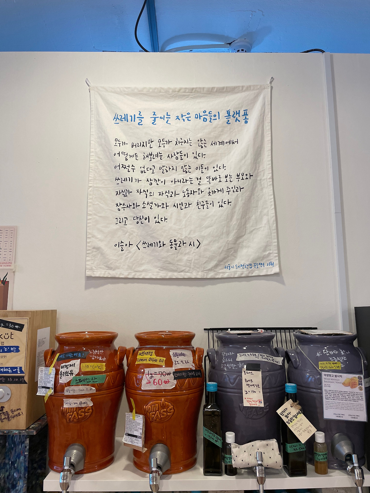 단순한 리필스테이션을 넘어 제로웨이스트 생태계를 만드는 알맹상점. 저는 이 작고도 단단한 곳에서 지속 가능한 환경을 꿈꾸게 되었습니다. 앞으로도 알맹상점과 같은 곳이 전국 곳곳에 생겨나길 바라며 글을 마치도록 하겠습니다.