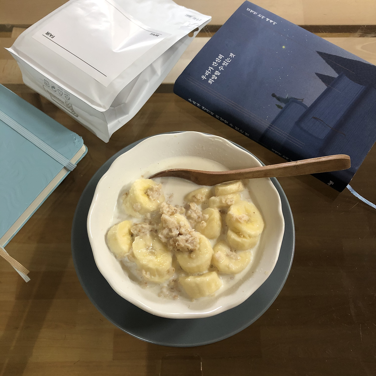 어젯밤에 넷플릭스에서 영화 <두 교황>을 보고 자는 바람에 여덟 시 기상은 못하였다. 십오 분 간격으로 촘촘히 설정해둔 모닝콜은 모두 들었지만, 삼십 분만을 거듭 외치다가 몽롱한 상태에서 연거푸 개꿈이나 꾸고 열 시에 겨우 침대 밖으로. 곧 쓰러질 것처럼 배가 너무 고파서 당장 뭔가를 집어넣어야 했다. 그래서 세상 맛없는 오트밀에 유통기한이 지나버릴까 초조한 우유를 붓고 전자레인지에 돌린 후 껍질이 시커멓게 되어버린 바나나 두 개를 썰어 넣고 입으로 밀어 넣었다. 하, 건강한(?) 음식인지는 모르겠지만 너. 무. 나. 맛이 없다! (이소라 언니 진심 존경...) 아무튼 커피를 한 잔 마시고 씻고 곧바로 일을 시작했고 점심시간이 한참 지나서야 떡국으로 주린 배를 달랠 수 있었다. 역시 아침을 '잘' 차려 먹으려면 일찍 일어나야 한다. 그때그때 냉장고도 체크해야 하고, 매일 뭘 먹을지 미리 정해두고, 재료도 준비해둬야 한다. 생각보다 쉬운 일이 아니다. 그래도 내일도, 뭐라도(사과, 토스트, 샐러드, 달걀, 아니면 김에 밥을 싸서?) 차려 먹을 것이다. 쓰레기만 만드는 인간으로서 조금이라도 쓰레기를 줄이려면 열심히 냉장고를 털어야 한단 말이다. 투덜투덜. 어쨌든 아침도 먹었고, 머리도 감았고, 오늘부터 재등록을 결심했던 요가 미션까지 무사히 클리어했으니 성공적인 하루다. 시간표를 보니 전부터 들었던 좋아하는 선생님 수업은 월수금 마지막 타임이네. 오예, 내일 반갑게 인사해야지.