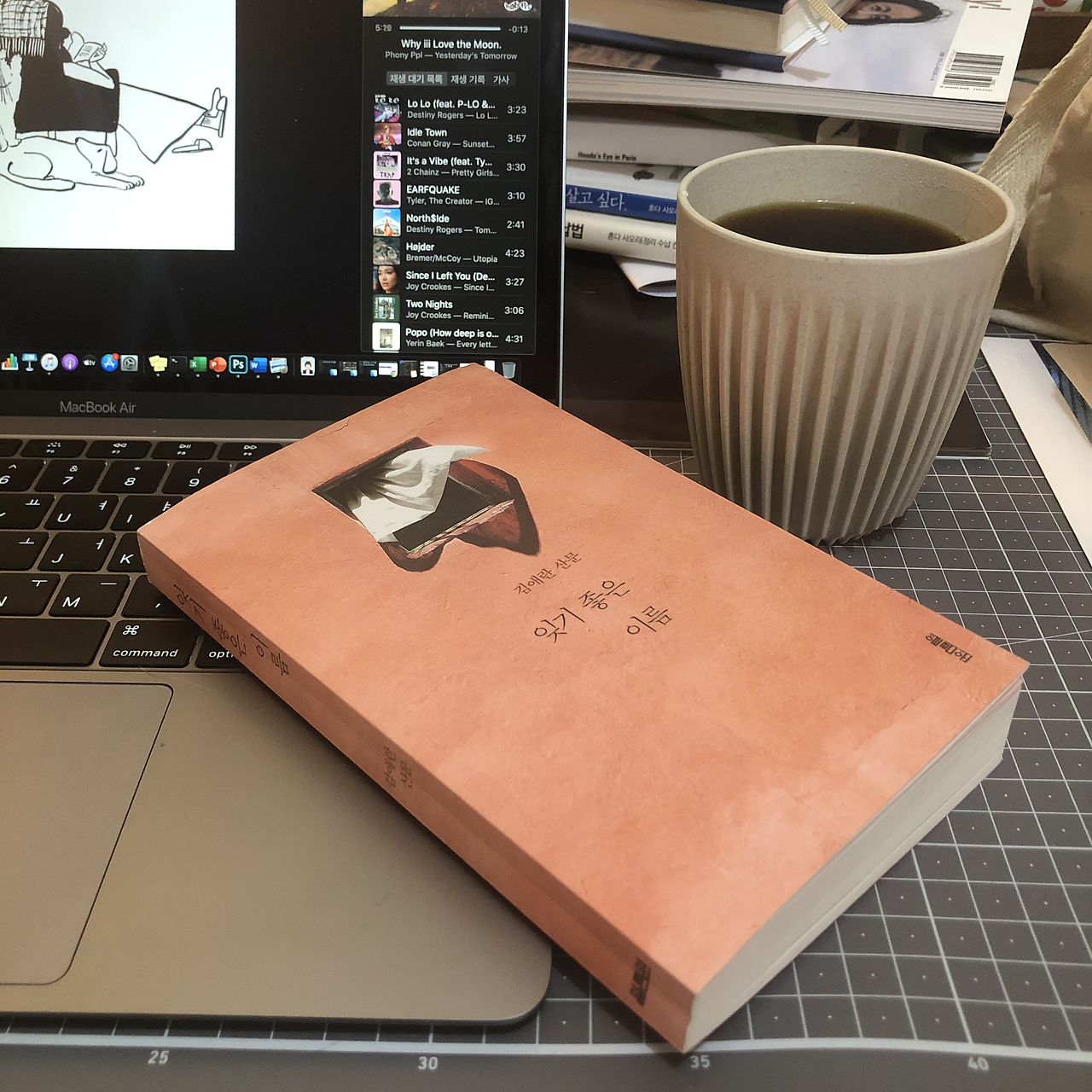어젯밤에 김치비빔국수를 만들어 잔뜩 먹고 잤더니 아침에 뭐를 먹고 싶지가 않았다. 그래서 레몬티를 한 잔 마시고 할 일을 좀 하고 다시 커피를 한 잔 마셨다. 겨울비가 오려고 날이 우중충해서 기분은 가라앉는데 집중은 잘 되는 날씨. 쌓아놓은 설거지도 하고 요가도 다녀와 다시 책을 펼쳤다. 그동안 뒷부분을 읽기 힘들어서 계속 미뤄두고 있다가 방금 마지막 장을 덮을 수 있었다. '2019년 여름 김애란'. 잘 기억해두려는 이름, 잊기 싫은 이름 중 하나다.