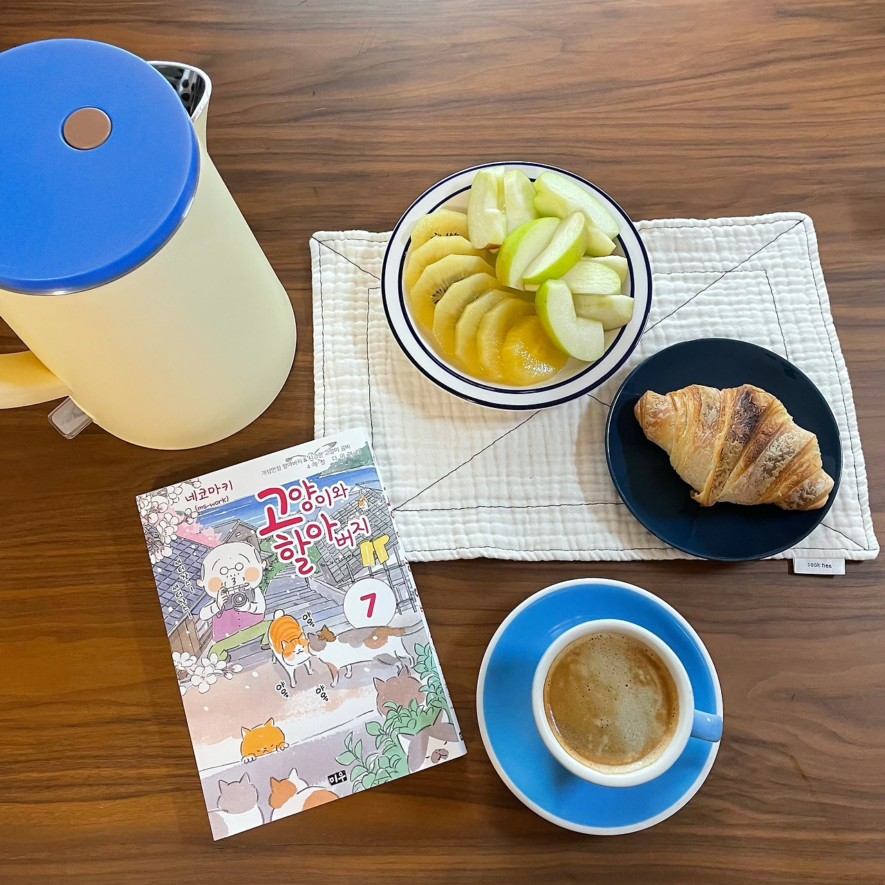 오늘은 세계 고양이의 날. 아침으로 냉동실에서 크루아상 생지를 꺼내 처음으로 구워 먹어봤다. 생각보다 괜찮네, 하면서 일부러 골라둔 책을 펼쳤다. 실은 지난주에 택배가 도착하자마자 앉은자리에서 다 읽었더랬다. - 만화책이다 - 한 권씩 나올 때마다 사보고 있는데, 1권부터 6권까지는, 빌려줬다가 (겨우) 돌려받은 사연이 생겨버렸다. 볼 때마다 생각하겠지. 뭐, 아무튼...
