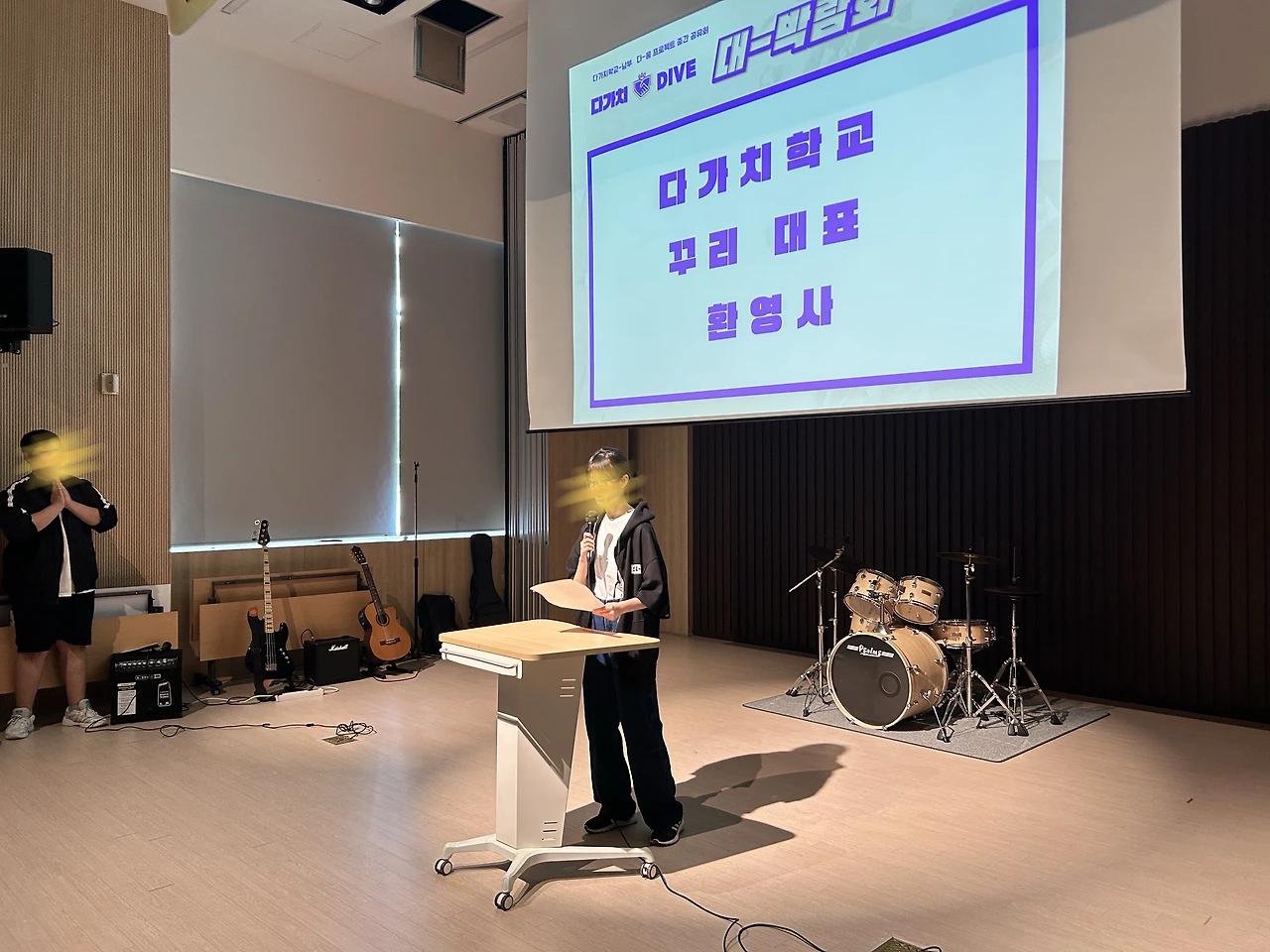 하다보니 (다가치)자치회 대표까지 맡아서 앞에서 다가치학교를 대표해서 환영사도 하고 있고요. 저는 원래 학교는 공부만 하는 곳이라고 생각해 왔어요. 다가치학교가 생기면서 학교가 놀 수 있는 곳, 친구를 만날 수 있는 곳, 머물고 싶은 곳이 되었어요.