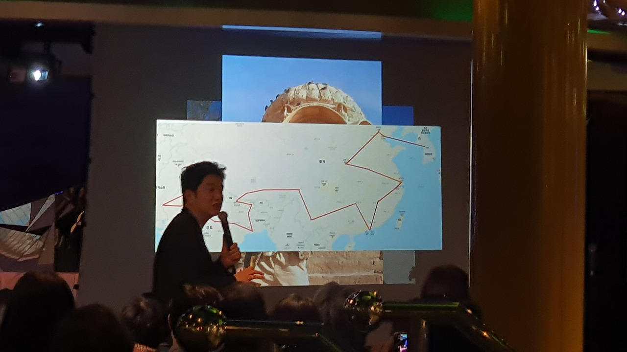 중국 대륙을 횡단합니다. 20년 전에 저 혼자 횡단하는데, 중국 대륙은 중국어를 못하면 밥을 못 시켜서 굶어 죽어요. 자연스럽게 중국 현지화가 됐죠. 절 아무도 한국 사람으로 보지 않았어요. 중국어를 열심히 배웠죠. 중국인으로 위장해서 현지에서 옷을 사 입고 차에 섞여서 티베트에 갈 수 있을 정도였죠. 티베트 공안이 저를 그냥 보고 보내줬어요. ‘아 얘는 동포구나.’ 원래는 쫓겨나요. 티베트, 네팔을 거쳐서 인도까지 가요. 경로를 보면, 인천에서 중국 텐진까지 갔다가 인도에 도착해서 비행기로 돌아온 거였죠.