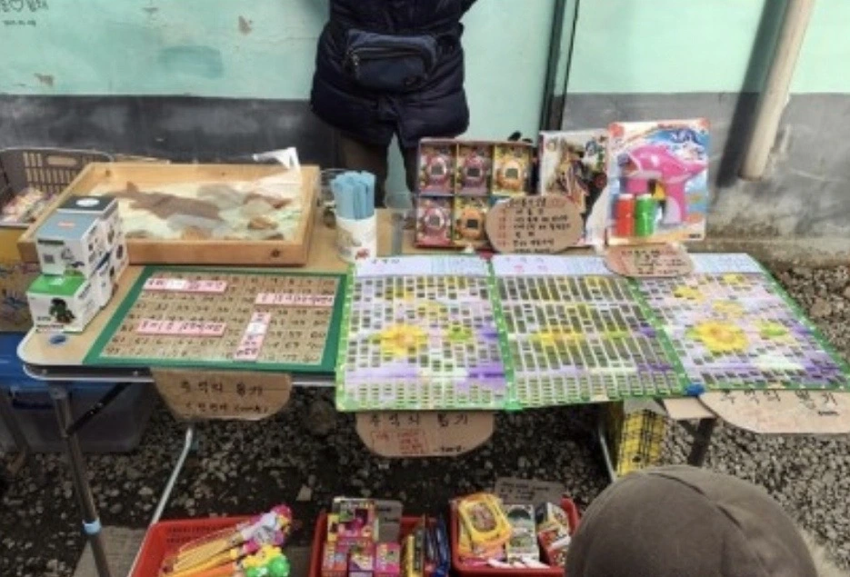 나는 순간 예전에 즐겨하던 뽑기가 생각났다. 스템플러가 박힌 종이를 뜯어 펼치면 그 안에 등수가 쓰여 있고 그에 맞는 상품을 주는 것이다. 그래서 추억의 뽑기판을 주문했고 추억의 장난감도 사들였다. 황금 설탕엿 틀도 사서, 설탕엿을 만들었다. 이 엿을 만드는 설탕과 물, 물엿의 최고 배합을 찾는 데에는 거의 한 달이나 걸렸다.