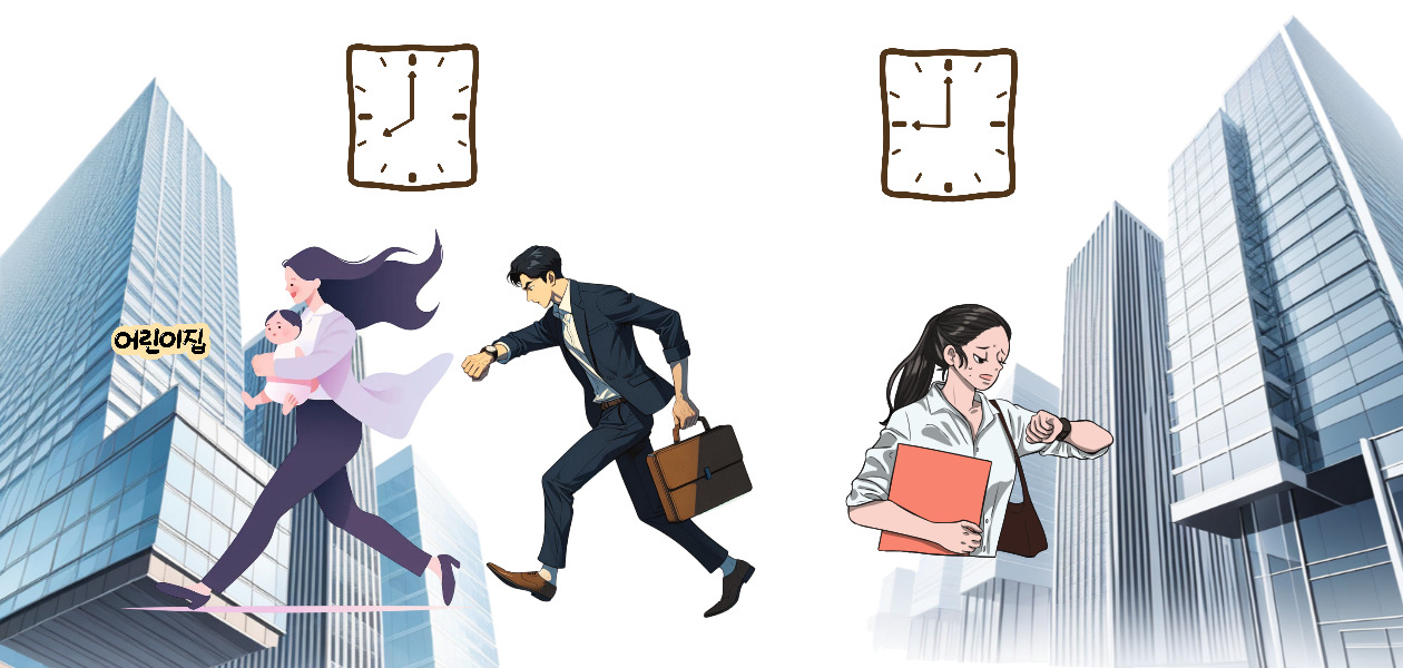 한결과 수진의 전쟁 같은 아침 일상이 시작됐다. 수진은 어린이집 등원 미션을 성공하고 사무실 자리에 앉고 나서야 한숨을 돌린다. 아이를 낳기 전에는 회사에 오면 피곤했는데, 이제는 회사에 오면 쉬는 느낌이 들 정도다. 수진은 의자에 앉아 커피를 마실 수 있는 이 시간에 감사함을 느낀다.