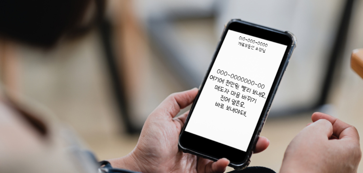 "000-0000000-00 여기에 천만원 빨리 보내요. 매도인 마음 바뀌기 전에 얼른요. 바로 보내야돼."