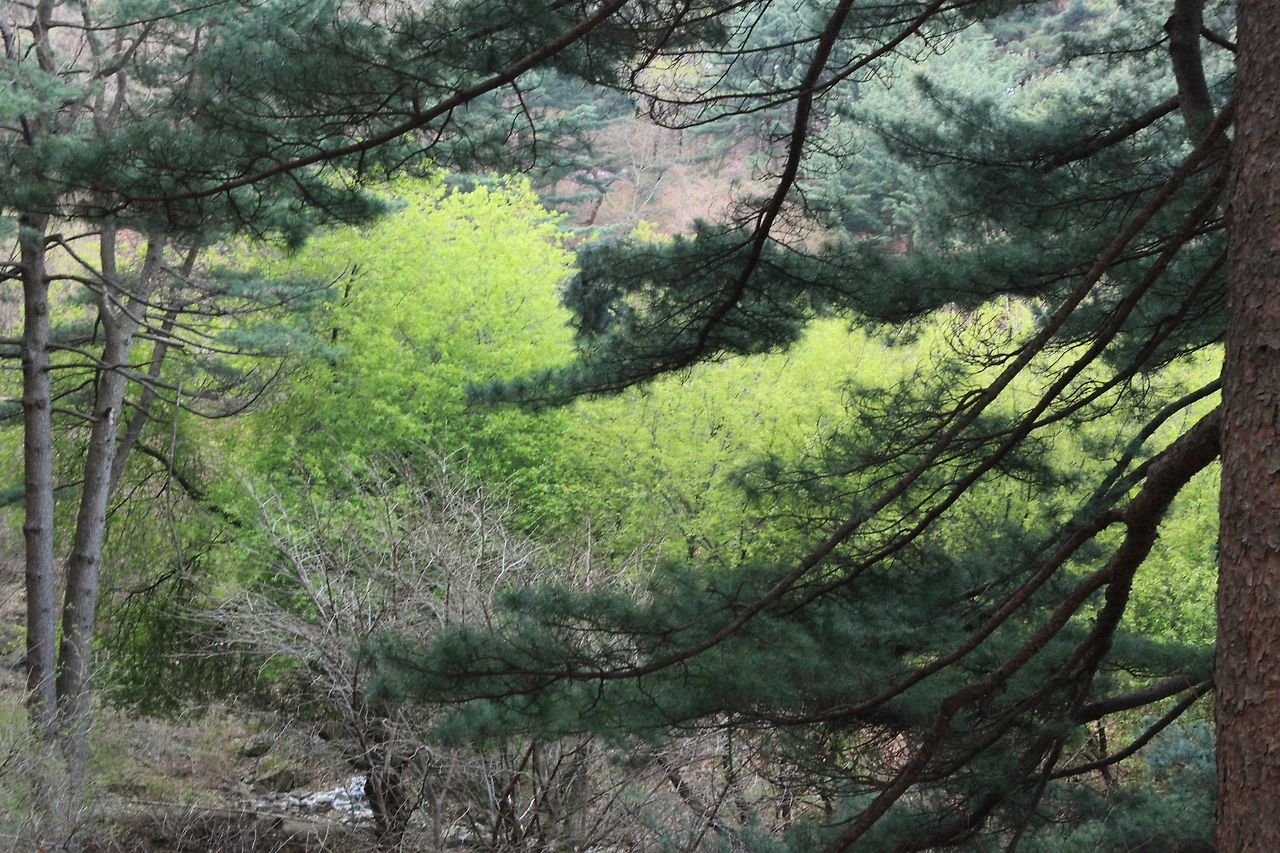 깊은 산에 올라가면 뜨문뜨문 보이는,
