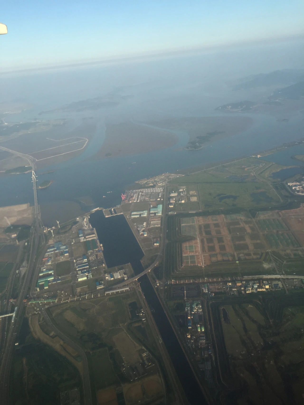 하늘에서 내려다본 인천의 중심지 인천항 및 월미도와,