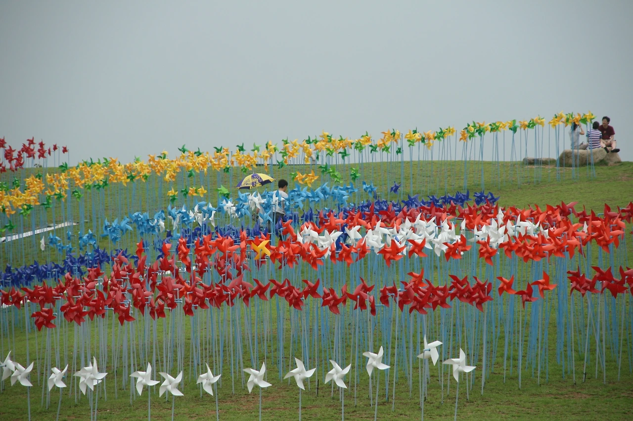 3천 개의 형형색색 바람개비들이 위치한 바람의 언덕이 상징.
