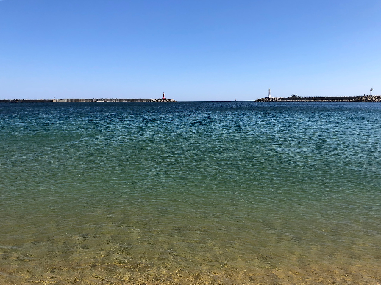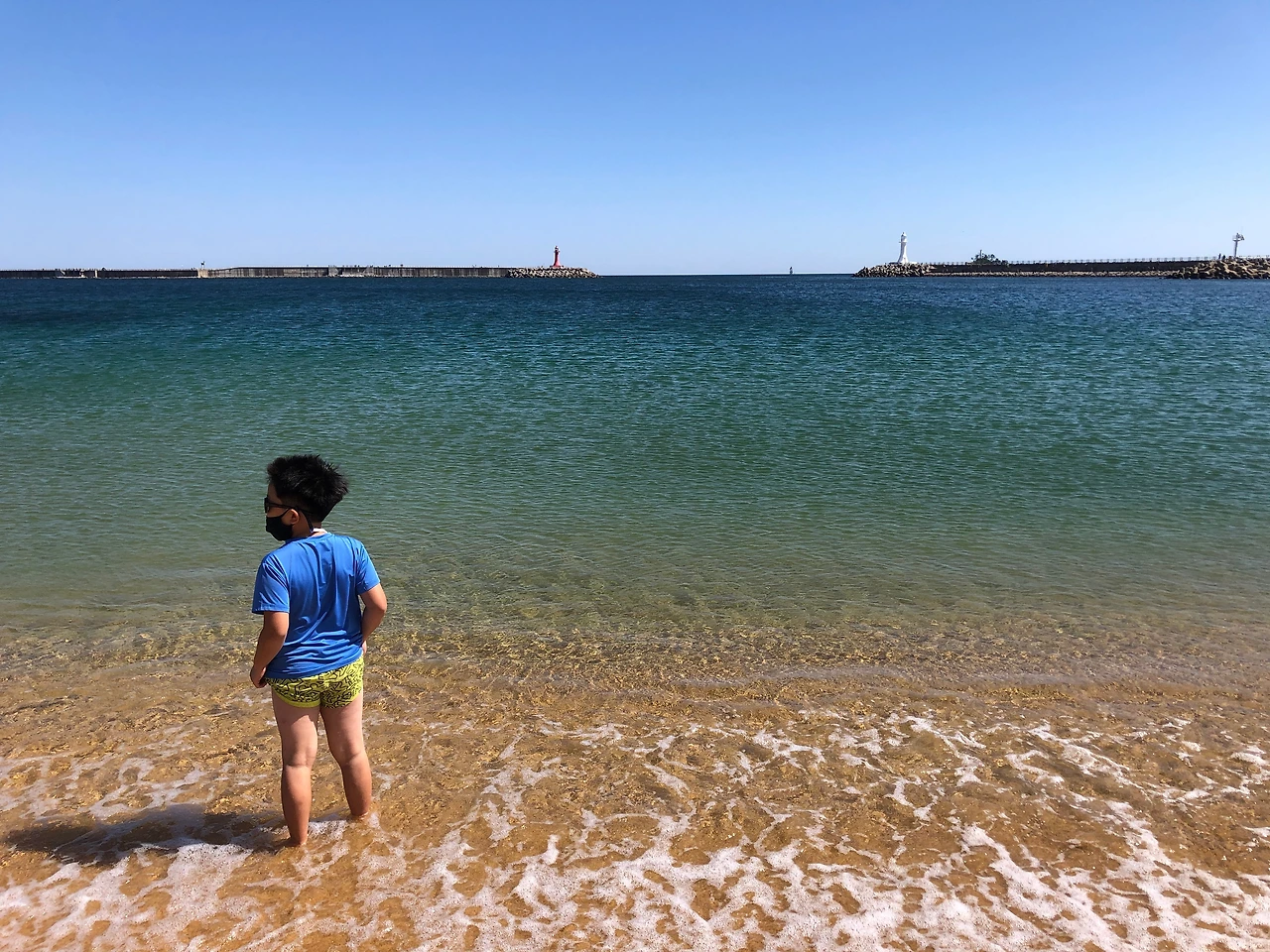 방파제가 감싼 바다는 잔잔하고 얕아 아이들이 놀기 좋은,