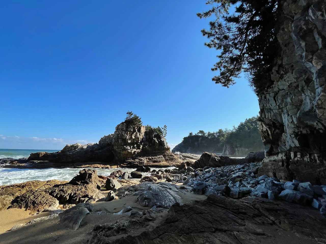 주변 갯바위와 작은 기암괴석들이 멋들어지게 형성되어 있는,