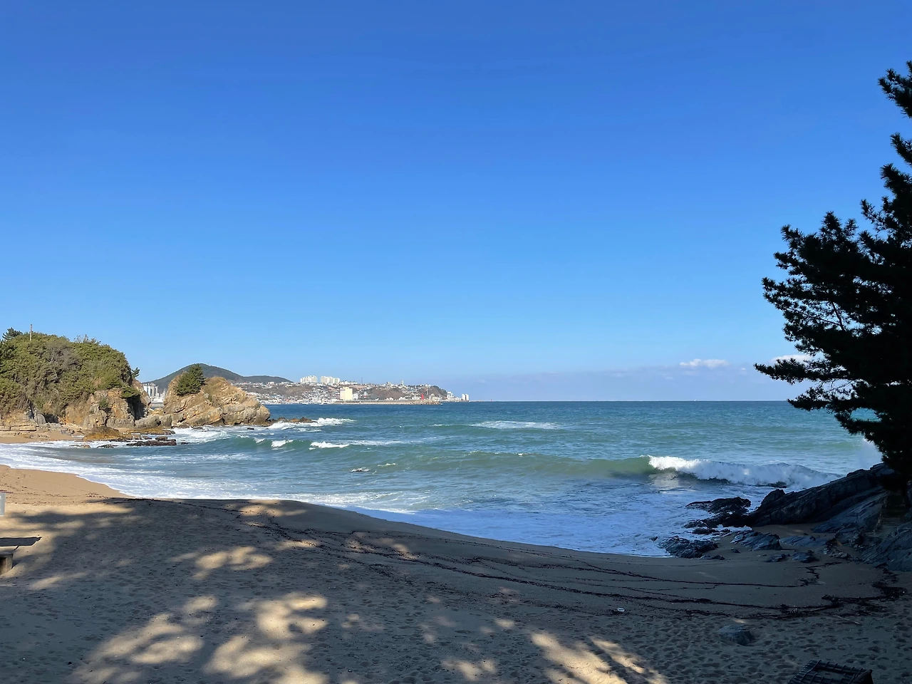 한섬의 동북변에서 100m 남짓한 작지만 아름다운 해변.