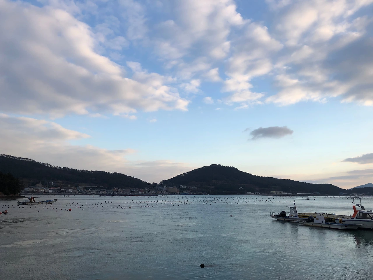 드넓은 바다에 전복양식이 널리 퍼져있는,