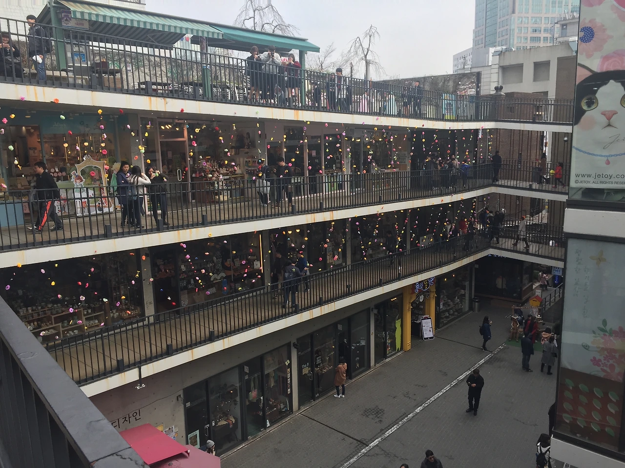 4층 나선형 건물에 한국의 전통공예품 판매점들이 모여있는,