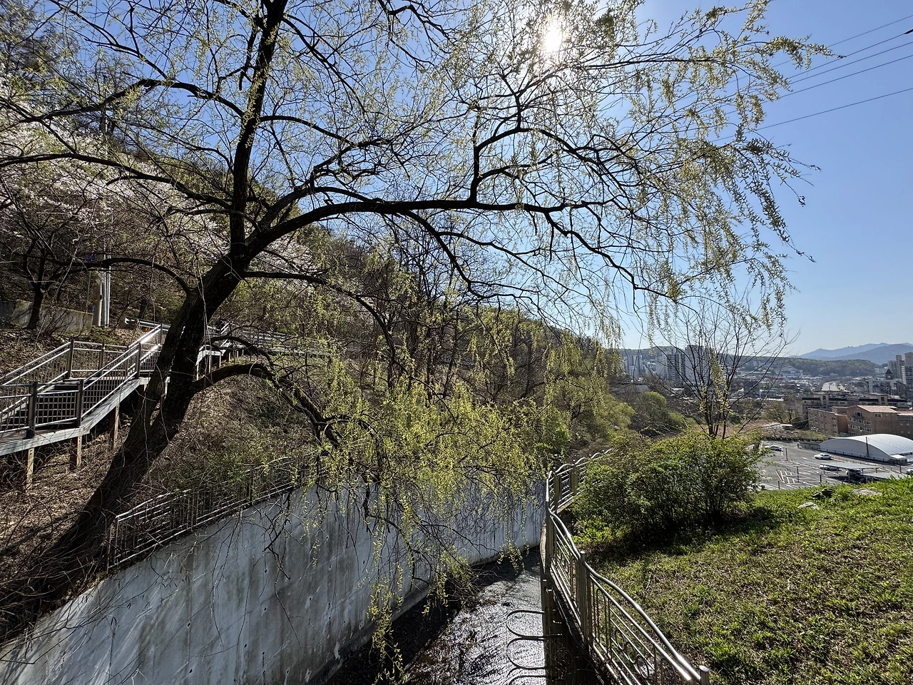 현재는 자연경관과 산책로를 갖춘 지역의 명소가 된 호수공원.