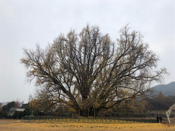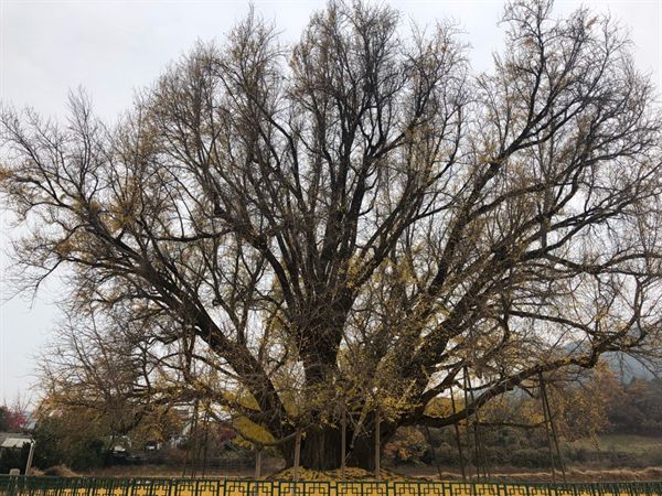 나무는 길가에서 한참 들어가 동네 뒤 언덕에 자리하고 있는데요, 동서로 37.5m, 남북으로 31m 정도로 넓게 퍼져 있는 가지는 보는 사람들의 탄성을 자아냅니다. 높은 건물이 없었던 예전에는 아마도 지역의 가장 유명한 랜드마크였을 겁니다.