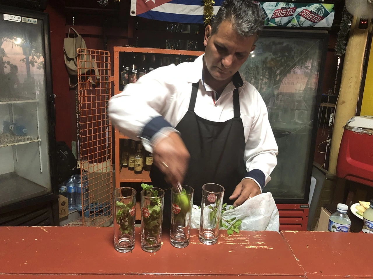 그러나 모히또를 시켜 마시는 데 있어 맛보다 더 눈길이 가는 것은 모히또를 만드는 모습이었다. 직원은 빈 잔에 시럽을 따르고 설탕을 넣은 뒤, 애플민트를 잔 안에 가득 넣고 나무막대로 으깨었다. 거기에다 쿠바의 럼주 아바나 클럽을 따른 뒤 얼음까지 넣으면 끝. 그 익숙한 손놀림에 나도 모르게 입이 벌어졌다.