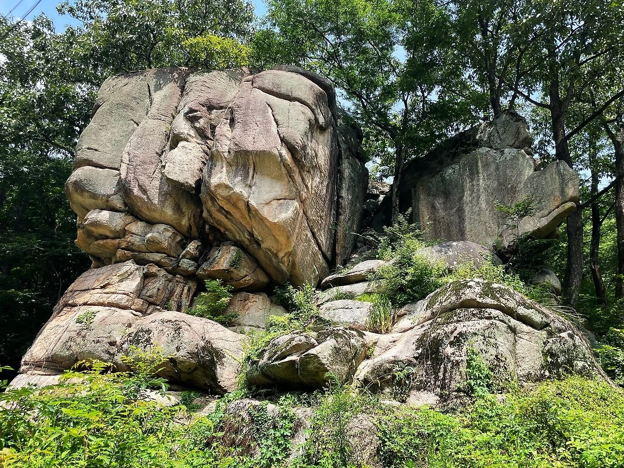 울창한 수풀 속에 가끔씩 보이는 기암괴석들.