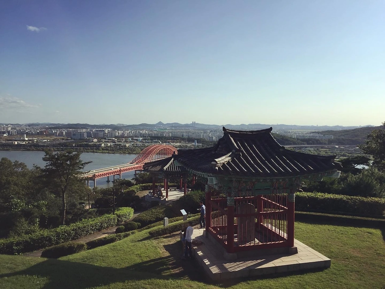 한강 하구 낮으막한 봉우리에 새겨져 있는,