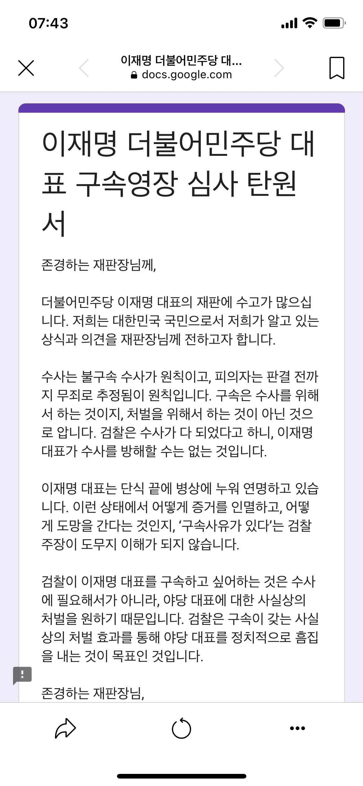 아직도 많은 당원들이 충격과 분노에서 빠져나오지 못하고 있습니다. 어찌 그럴 수 있냐며 탈당하는 사람들도 있습니다. 아닙니다. 지금은 민주당에 남아 이재명 대표에게 힘을 실어주어야 합니다. 오히려 더 많은 사람들을 불러 모아 함께 해야 합니다. 그로써 그가 틀리지 않았음을 증명해 내고, 그가 폭압적인 현 정권에 맞서 국민들을 대변하여 싸울 수 있게 해야 합니다.