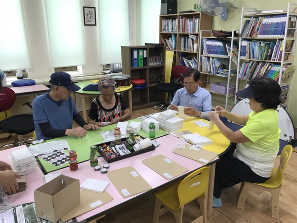 "네. 노인문제만 가지고 가면 학교에서 잘 받아주지 않거든요. 노인 그러면 이미지가 긍정적이지 않고 가엾거나 부정적이니까. 또 노인만 가지고 8주 교육과정을 만드는 것도 힘들고. 그래서 업사이클 교육을 먼저 하고, 저희가 가지고 있는 보드게임 등을 통해서 노인들의 이야기를 합니다. 어르신들을 도울 방법을 업사이클로 고민하는 거죠. '새로운 쓸모 프로젝트'가 저희 교육명입니다. 실제로 아이들의 인식이 개선된다고 생각합니다."